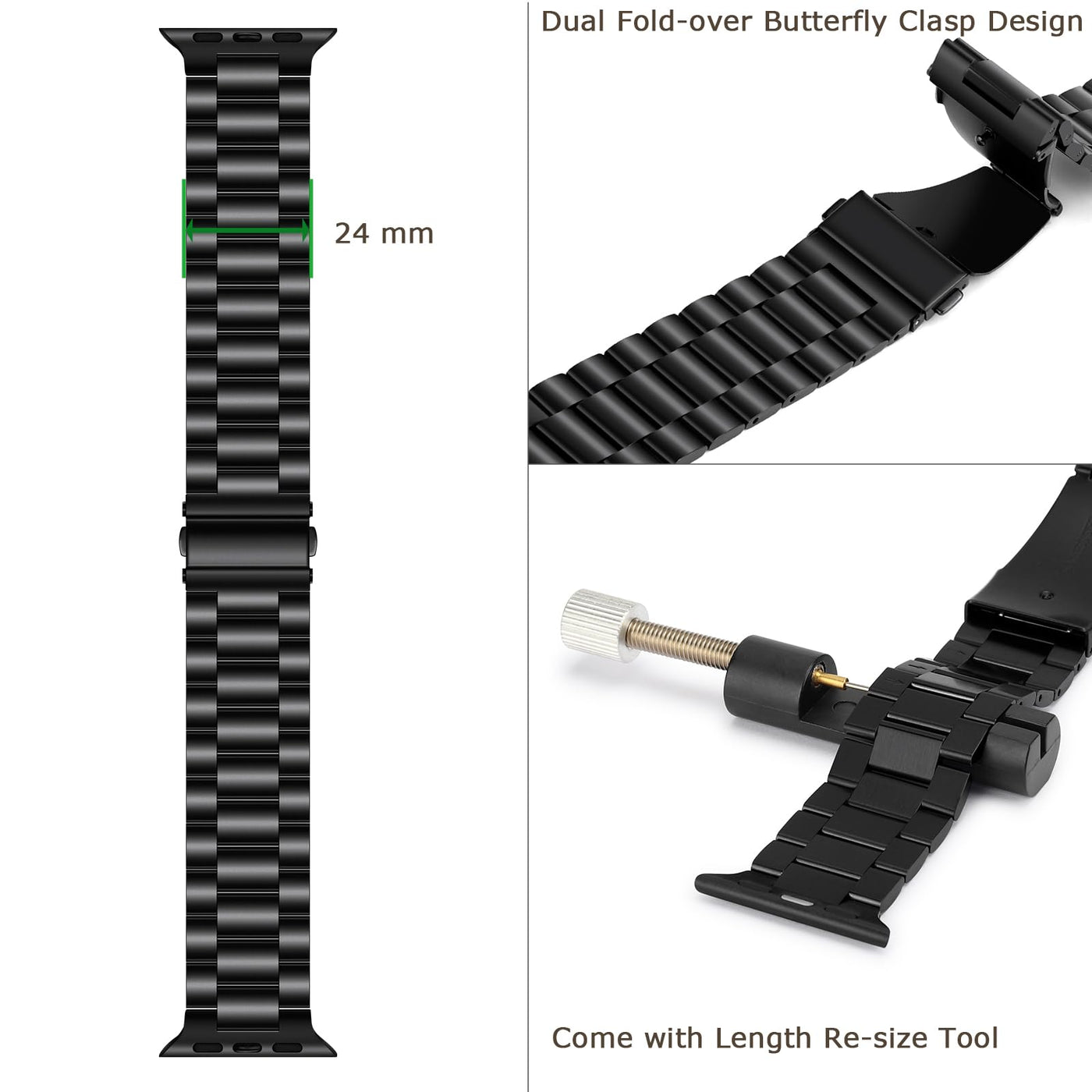 Tasikar Band Compatible With Apple Watch Band 49Mm 45Mm 44Mm 42Mm Premium Stainless Steel Metal Replacement Strap Compatible With Apple Watch Series 9 8 7 6 5 4 3 2 1 Se (Black)