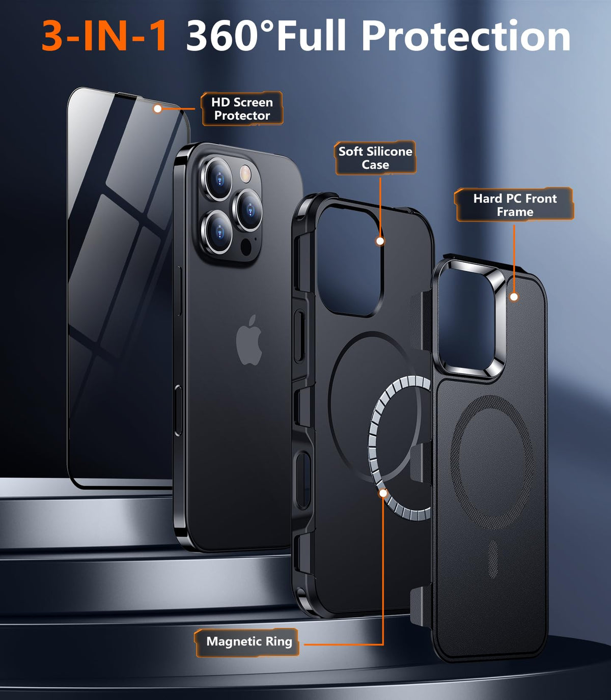 Temdan Designed For Iphone 16 Pro Max Case Magnetic, [Compatible With Magsafe][Military Grade Drop Protection] Dropproof Heavy D