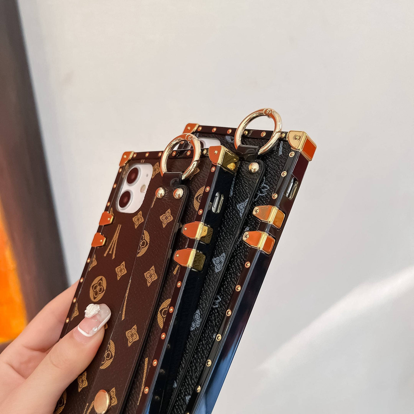 Trodino Square Leather Iphone 11 Case With Wristband Strap, Luxury Designer Case For Women Girls, Holder Ring Kickstand Raised R