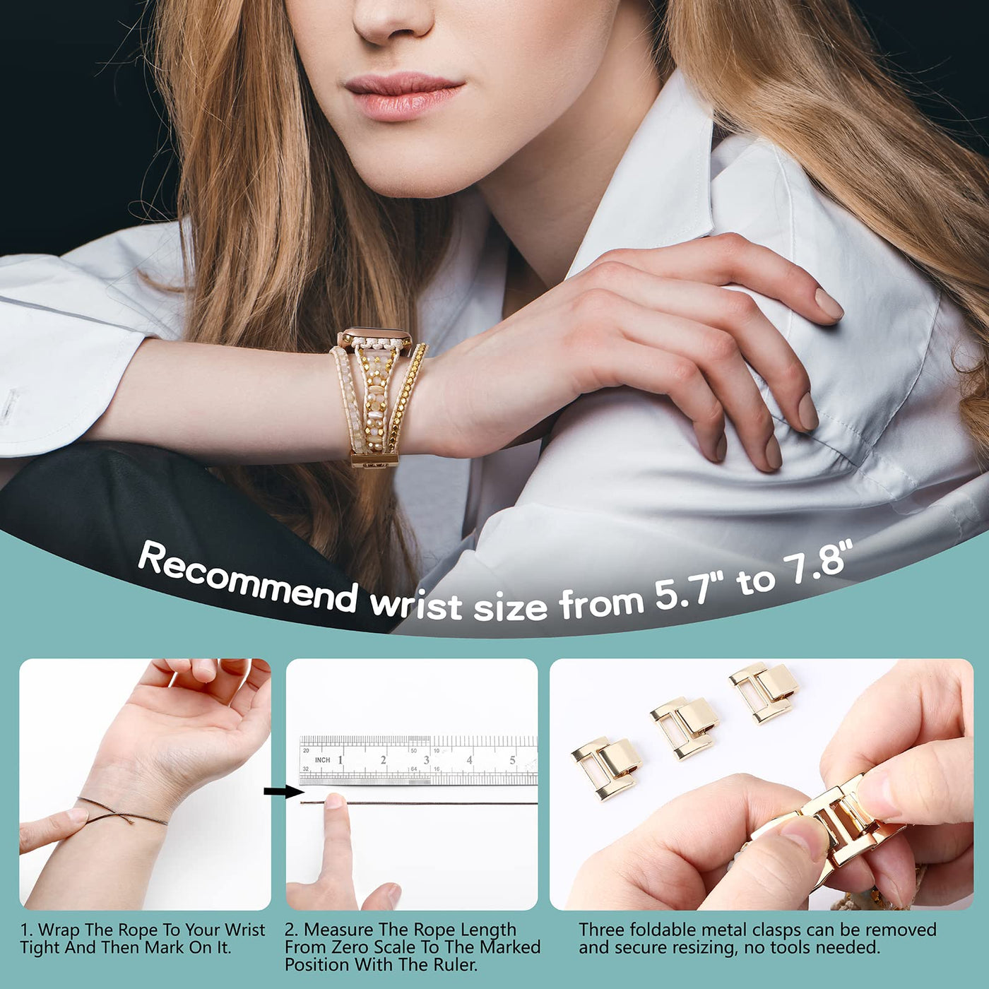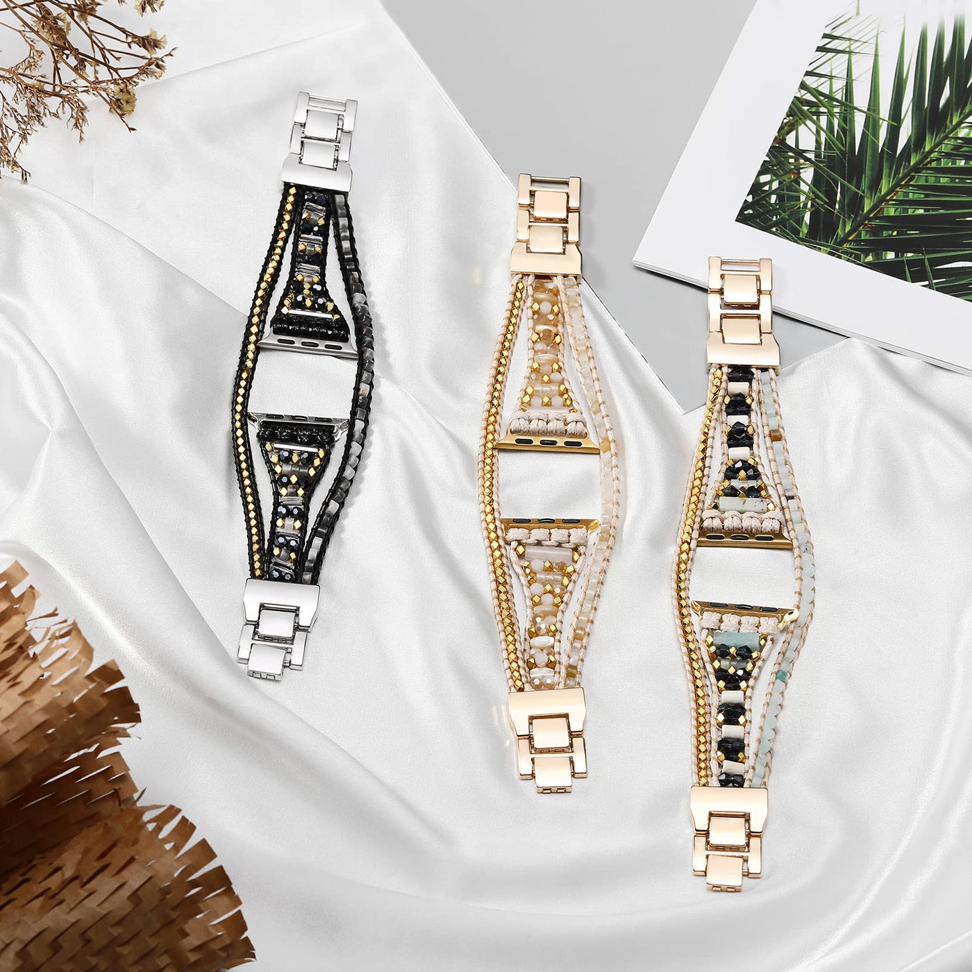 **All Apple Watch Series** For All Apple Watchiwatch Se & Series 8 7 6 5 4 3 2 1 Se Ultra, 38Mm 40Mm 41Mm42Mm 44Mm 45Mm 49Mm For You To Choose **Fine Workmanship** Easy To Install, With Precisely Matched Connector And A Sturdy Buckle To Better Prevent Your Watch From Falling **Easy Match** Chic Style To Easy Match All Of Your Outfit And All Of Your Jewelries Whether It Is Black Or White Color Colothers Or Other Warm Light Color Clothes, Boho Apple Watch Band Is Always A Correct Choice **Size** Fit Wrist Size From 54 To 78 Three Foldable Metal Clasps Can Be Removed And Secure Resizing, No Tools Needed Perfect Locks Onto Your Iwatch Precisely And Securely **Package Included** 1 X Watch Band (No Watch Included) 1 X Gift Pouch