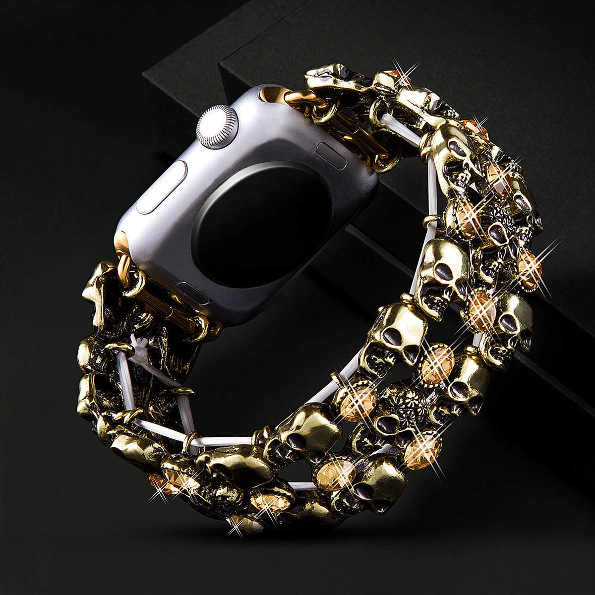 Viqiv Crystal Rhinestone Replacement Band For Apple Smart Watch Series 4 (2018) Series 3 (2017) Series 2 (2016) Series 1 (2015). All Models Unique Skull Fashion Jewelry Design Bands For Apple Watch Iwatch Iphone Watch Made Of Premium Alloy Gives Your Apple Watch A New Look Goes With Any Jewelry This Band Looks Elegant. It Gives You A Nice Option To Wear Your Apple Watch With Dresses. For New Year For Party For Xmas For Halloween Product Description: Made Of High Quality Alloy. The Rhinestone On The Link Makes Your Smart Watch Look More Fashionable. Wrist Set With Rhinestones. Makes Your Iwatch Band Look Like A Skull Jewelry. Brings You Lots Of Compliments; The Hollowed-Out Design Not Only Makes The Band Lightweight And Elegant But Also Creates Ventilation Holes. Allow Your Wrist To Breathe. Fits Wrist Size 6.5-7.5 Inches Wrist. Viqiv Band Fits All Apple Watch Versions: Series1, Series 2, Series 3, Sport & Edition. High-Tech Polished Surface Watch Strap Fits Your Device And Feels Comfortable On Your Wrist. It Is An Unique And Shiny Gift Idea For Any Occasion: Christmas, Birthday, Valentines Day Holidays, Parties, Concerts, Gifts Etc.Etc. Perfect Gift For Women And Girls. It Makes Your Smart Watch Look More Fashionable.Wrist Set With Skull Makes Your Iwatch Band Look Like A Jewelry. Brings You Lots Of Compliments; Package Include: 1* Viqiv Replacement Band