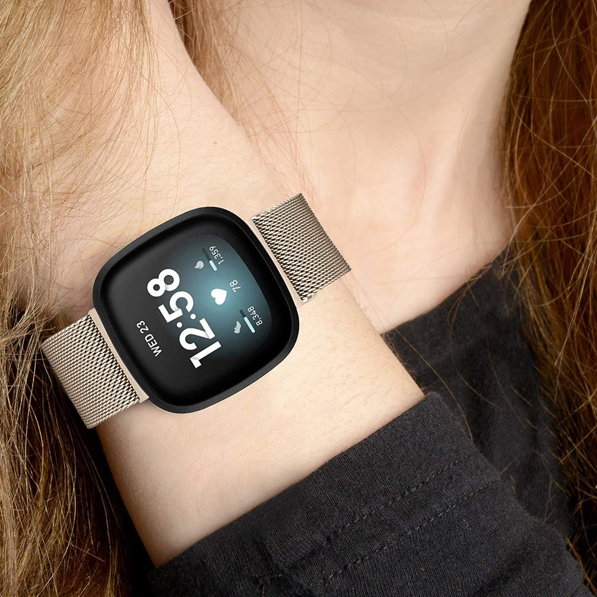 Compatible With: New Versa 3 / Sense Smart Fitness Watch 2020. (Not Included Tracker) Material: Strong Magnetic,Adjustable Size,Breathable,Comfortable,Fashionable And Doesn'T Ruin Your Clothes. Occations: Suitable For Everything, Daily Wear, Formal Occasion, Sleep, Party, Sports And So On. Package: 1* Versa 3 / Sense Band