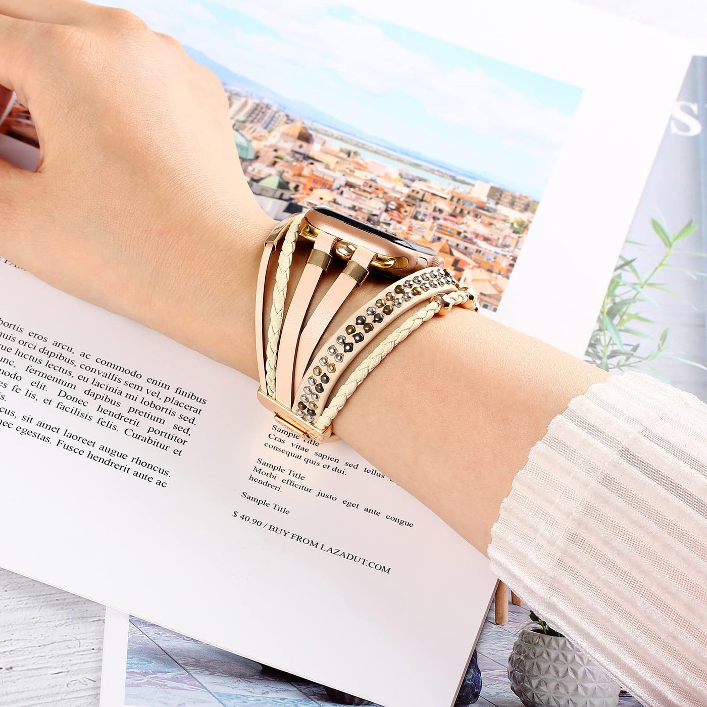Compatible Models Compatible With Apple Watch Band 38Mm 40Mm 41Mm 42Mm 44Mm 45Mm, Series 7654321Se Perfect For Dressing Up Your Iwatch Superior Materials Pu Leather Apple Watch Band, Wont Pilling Or Peeling Off High Quality Zinc Alloy Links, Nickel & Lead Free, Hypoallergenic Easy To Resize Three Folding Clasp Type Links Allow Rapid And Secure Resizing Without The Need For Tools Simply Remove A Folding Clasp To Resize The Band Choose Your Own Wrist Size 1Wrap The Rope To Your Wrist Tight And The Make A Mark On It 2Measure The Rope Length From Zero Scale To The Marked Position With A Ruler 3Get Your Own Wrist Size