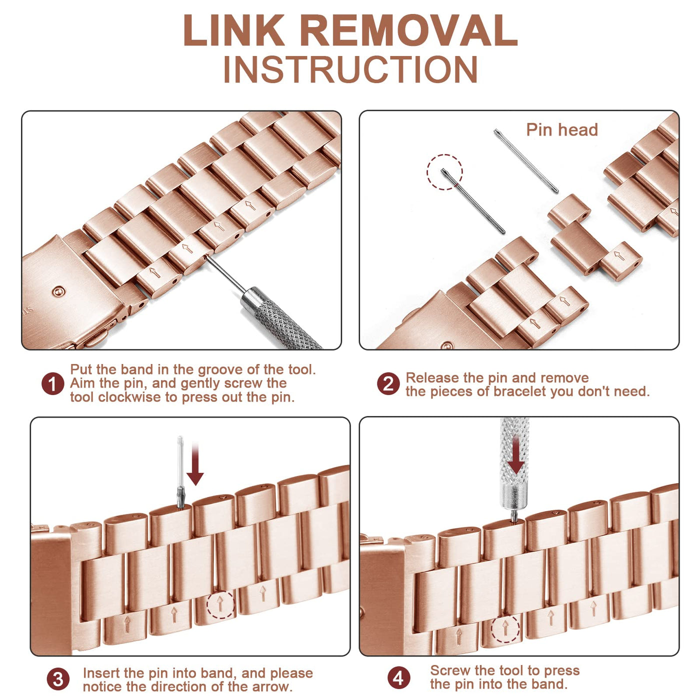 Q: How do I adjust the length of the Yeahxing watch band?A: The band can be easily adjusted to fit wrists from 5.5 inches to 8.7 inches (14cm to 22cm). It comes with a watch strap remover to facilitate the adjustment process.