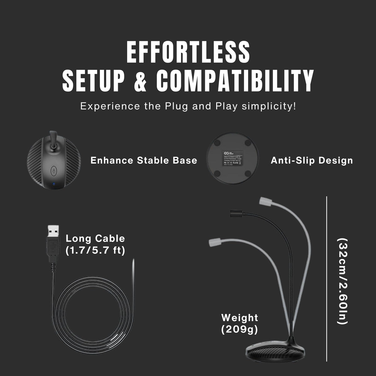 Elevate Your Audio Universe Step Into A Realm Of Auditory Excellence With This Condenser Microphone For Pc (Egm-03). This Remarkable Pc Microphone Is Your Gateway To Professional-Grade Sound For Live Streams, Virtual Meetings, Podcasts, And Recordings That Leave An Indelible Mark. A Soundscape Without Limits Embrace A Soundscape That Knows No Bounds. Egm-03 Computer Microphone Boasts An Extraordinary Omnidirectional Pickup Pattern, Ensnaring Sound From Every Corner. Say Farewell To Ambient Distractions, And Immerse Your Audience In Pure Audio Brilliance. Seamless Setup, Boundless Compatibility We'Ve Made Setup A Breeze! Just Plug The Usb Microphone Connector Into Your Mac Or Pc, Select It As Your Audio Source In Your Software, And You'Re Ready To Embark On An Audio Adventure. (Please Note: Not Suitable For Phones, Ipad, Or Xbox.) Silent Stability Find Serenity In Your Recording Environment. Our Ingeniously Stable Base Keeps Your Streaming Microphone Standing Tall, Defying The Chaos Of Mouse Clicks, Keyboard Clatter, And Unforeseen Bumps. Stay Focused On Your Craft, Undisturbed. What'S Inside The Box: 1 X Egm-03 Usb Microphone With 1.8M Usb Cable 1 X Sponge Cover 1 X User Manual Specification: Condenser Diameter: F14Mm Polar Pattern: Omnidirectional Frequency Response: 50Hz-50Khz Input Sample Rate: 48Khz Bit Rate: 16Bit S/N Ratio: >90Db Sensitivity: -33Db3Db Signal To Noise Ratio (S/N): 58Db Cable Length: 1.8M/5.9Ft Step Up Your Audio Game With The Egm-03 Usb Condenser Microphone. Elevate Your Content Creation, Leaving An Indelible Mark With Sound That Resonates. Unleash Your Audio Journey Today!