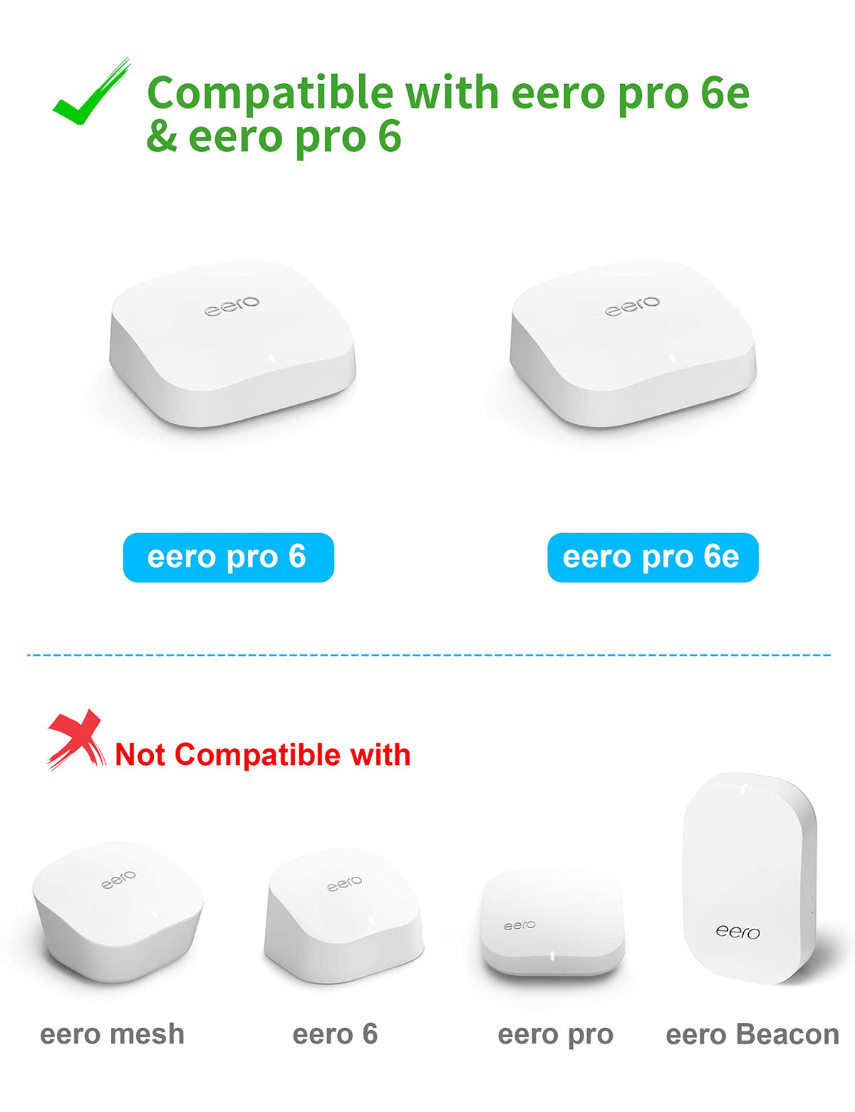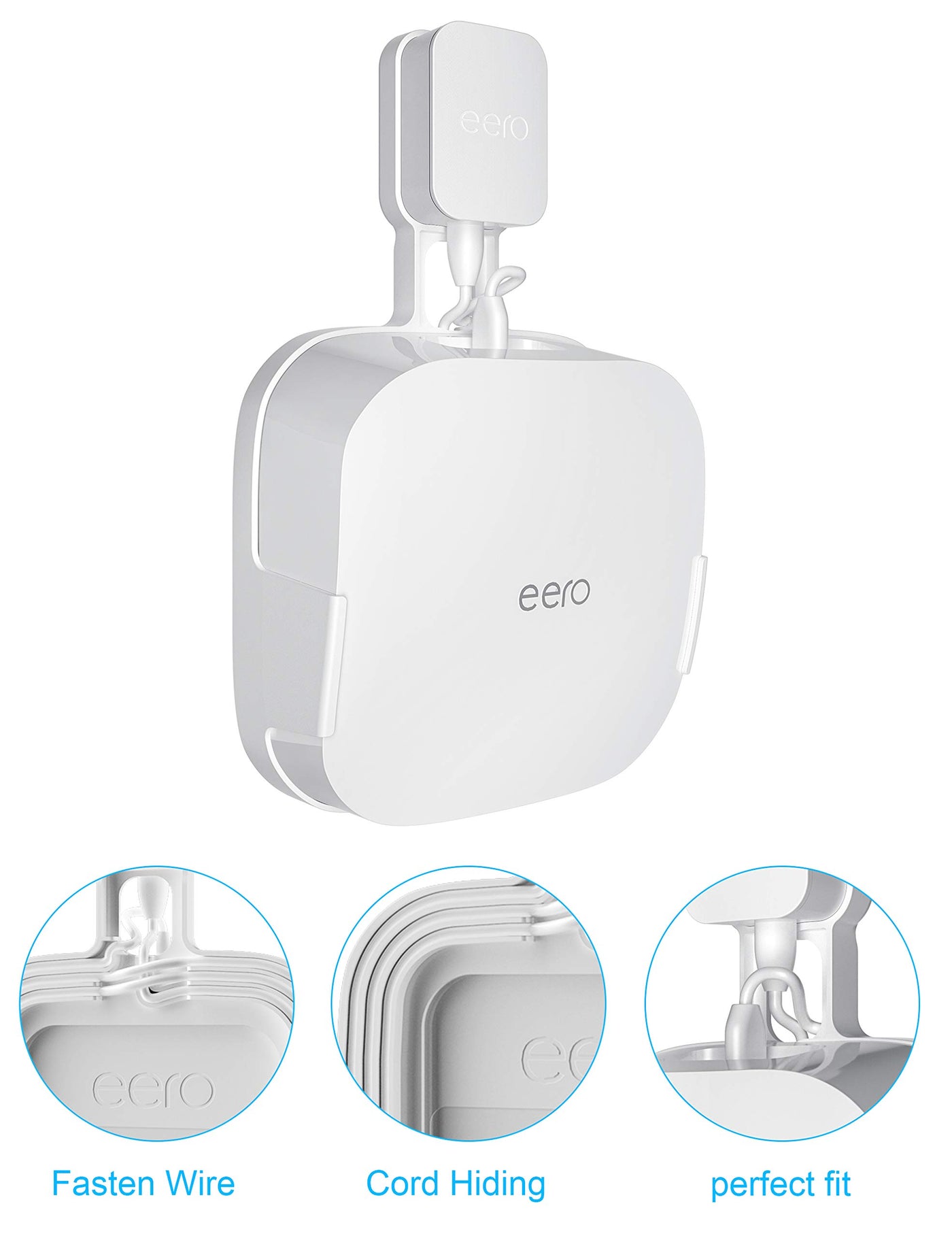Coolwufan Outlet Mount Holder Stand Bracket For Eero Pro 6 Home Wifi And Eero Wifi System. Nice Way To Handle Cable Issues When Placing Eero Units.Color: White Size: 8.5 *5* 1.6 In Product Weight: 100G Package Weight: 120G Material: Sturdy Plastic Features: (1)Unique Desigh, No Messy Wires, Elegant Looking Makes Your Home More Neat And Clean (2)Durable Hard Plastic Material, Sturdy Enough And Hold The Eero Router Securely (3)Easy To Install And Replace, No Need Any Tools To Install And Finish In 5 Minutes. (4)Suitable For Any Position As Long As There Is A Socket. (5)Solid Plastic, The Same With Material,Colors And Design Elements Of Eero Wifi Shell,Never Interfere With The Wireless Signal.