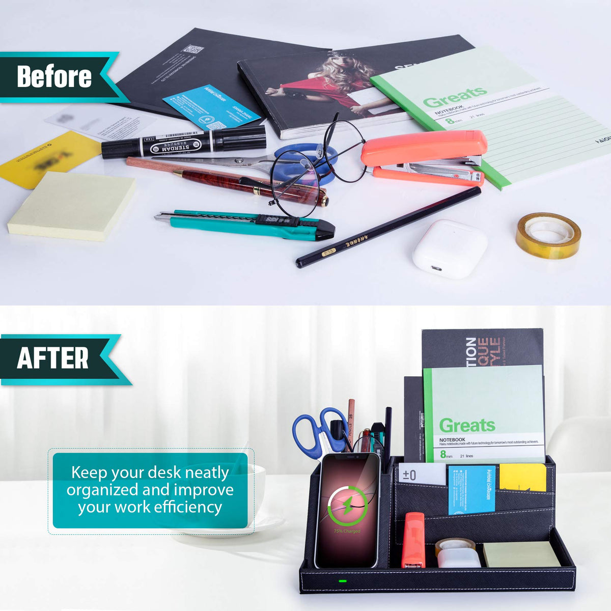 ? Multi-Functional: This Unique Desktop Organizer Has 4 Compartments And A Wireless Charging Station. Not Only Can Organize Your Nightstand Accessories, But Also Fast Charge Your Phone Wirelessly. Organize Your Essentials In One Place With Our Edc Tray,Make Your Life More Easier