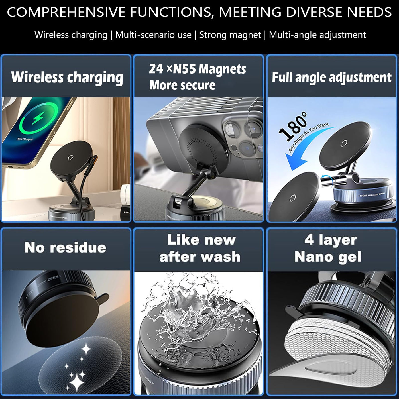 Wireless Charger Car Phone Holder For Magsafe,360Adjustable Vacuum Magnetic Phone Holder Suitable For Non-Smooth Surfaces,Compat
