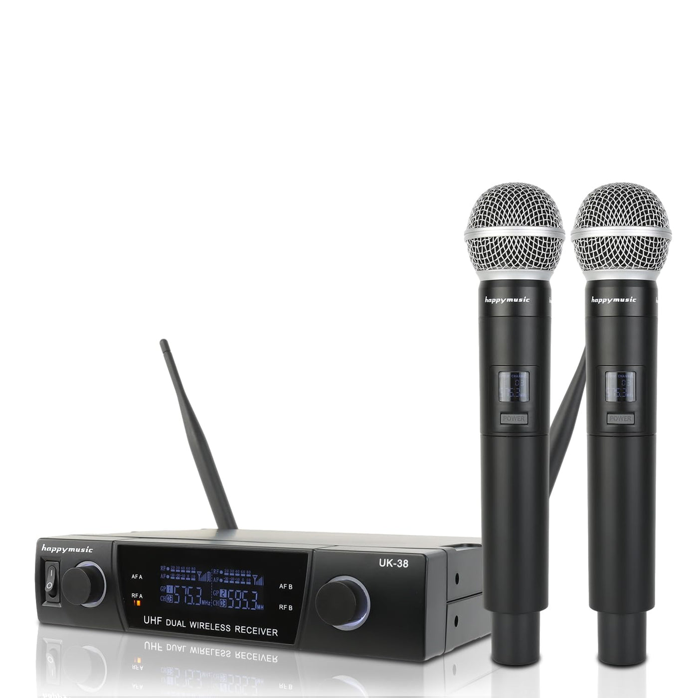 Happymusic Professional Uhf 2 Channel Wireless Microphone System, Cordless Handheld Mic Set, 150Ft Range Perfect For Dj, Church,