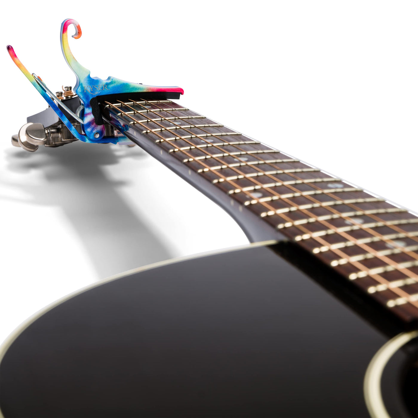 A Kyser Quick-Change Capo Is Expertly Engineered And Built To Last It Is Reliable And Does Just What It Is Designed To Do - Clearly Raise The Pitch Of The 6-String Acoustic Guitar So You Can Play In A Different Key Without Retuning Or Changing Fingering Seasoned Professionals And Beginning Players Alike Appreciate How The Kyser Quick-Change Capo Helps Them Transpose Their Guitar In Seconds, With Only One Hand The Beauty Of The Kyser Quick-Change Capo Is In Its Simplicity Kyser Pioneered This Design And Although Often Imitated, A Kyser Is Never Equaled There Is No Substitute For A Genuine Kyser Quick-Change Capo Made By Hand In Texas, Usa Guaranteed For Life No Two Tie-Dye Color Combinations Are Exactly The Same Tie-Dye Color Combinations May Vary Slightly From Images Shown Here