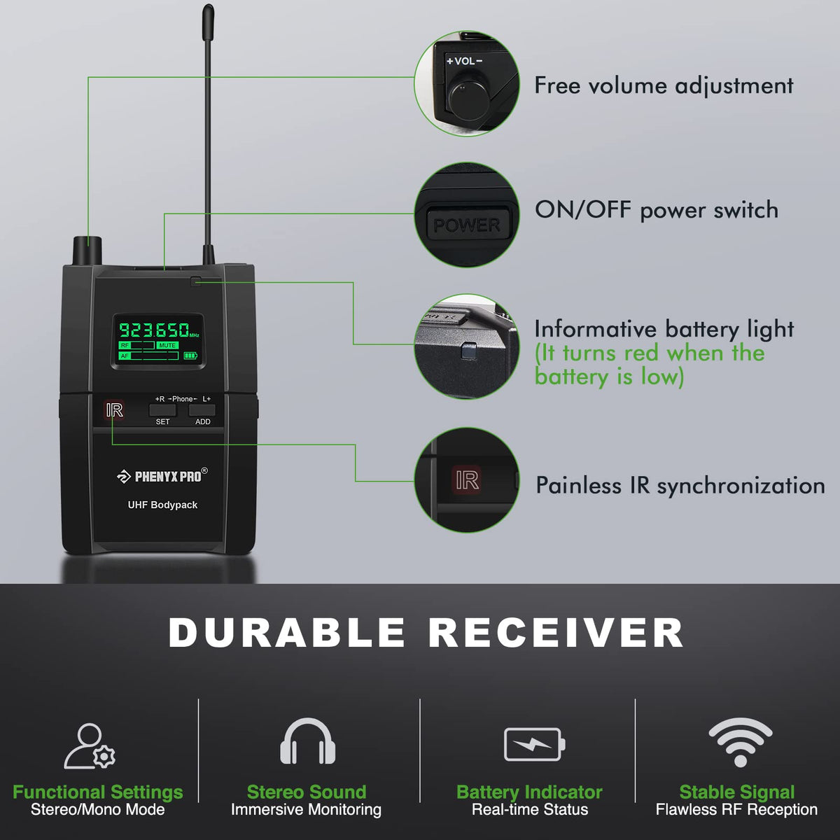 Phenyx Pro Ptm 10 Stereo Wireless In Ear Monitor System Bodypack Receiver, Performance With 89 Adjustable Frequencies
