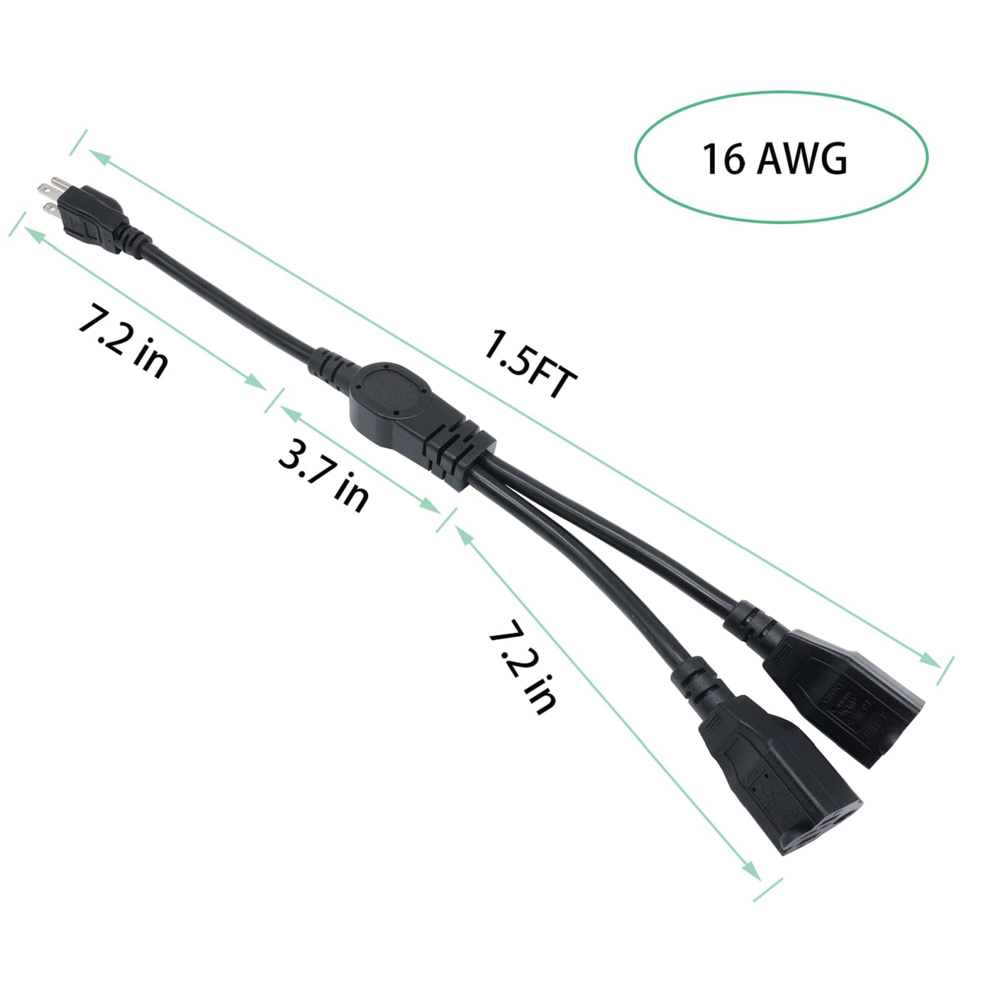 1.5 Ft Extension Cord Splitter 1 To 2, 3 Prong Indoor Power Outlet Splitter, 16Awg Cable Wire Extender Space Saver For Halloween