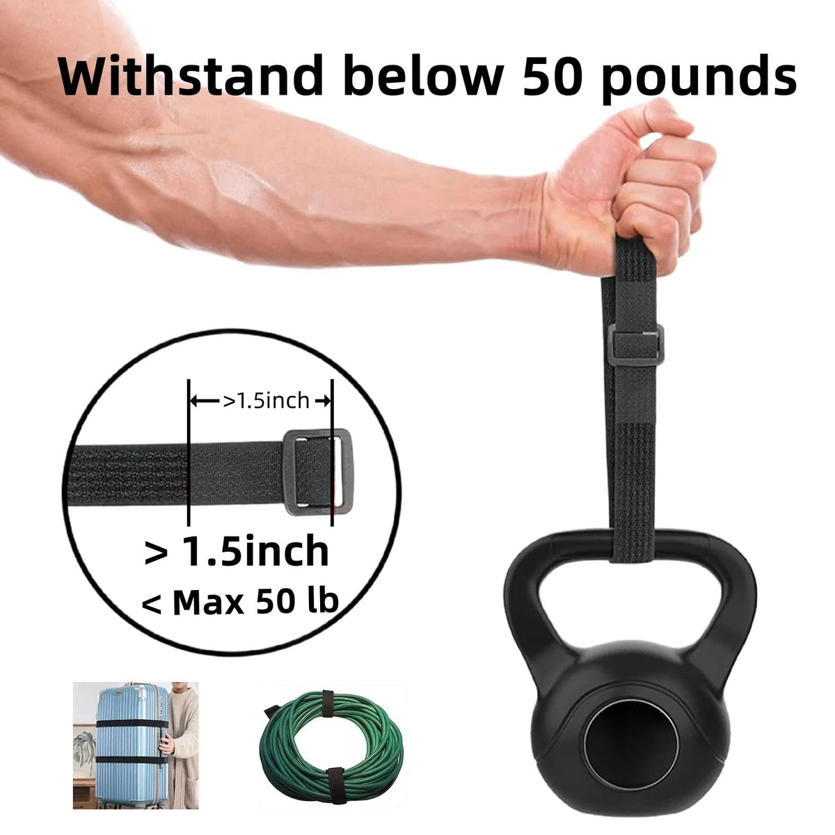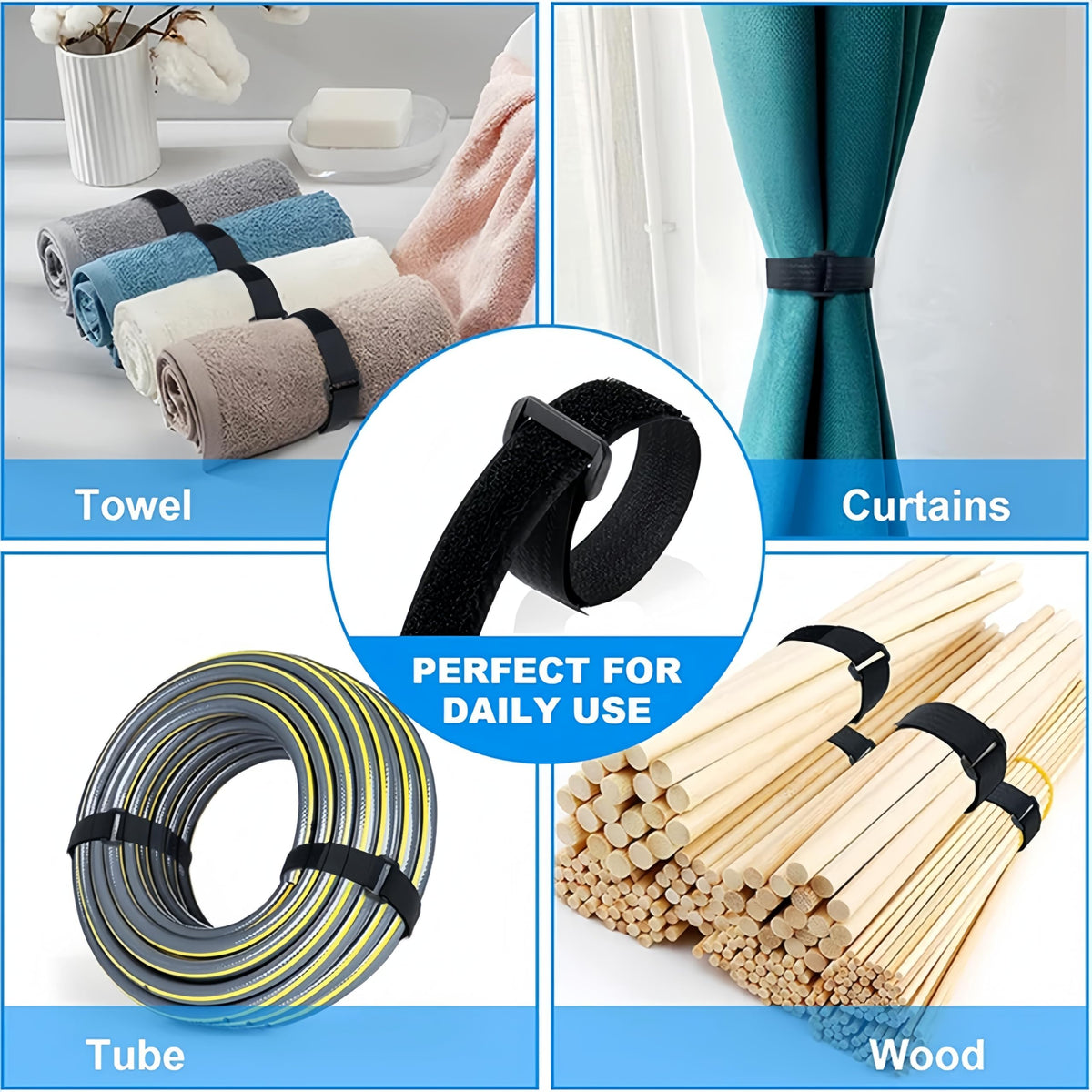 1.5 Inch Wide 64Ft Cable Straps With 50 Buckles, Heavy Duty Nylon Hook And Loop Straps For Fastening Securing, Reusable Cut To L
