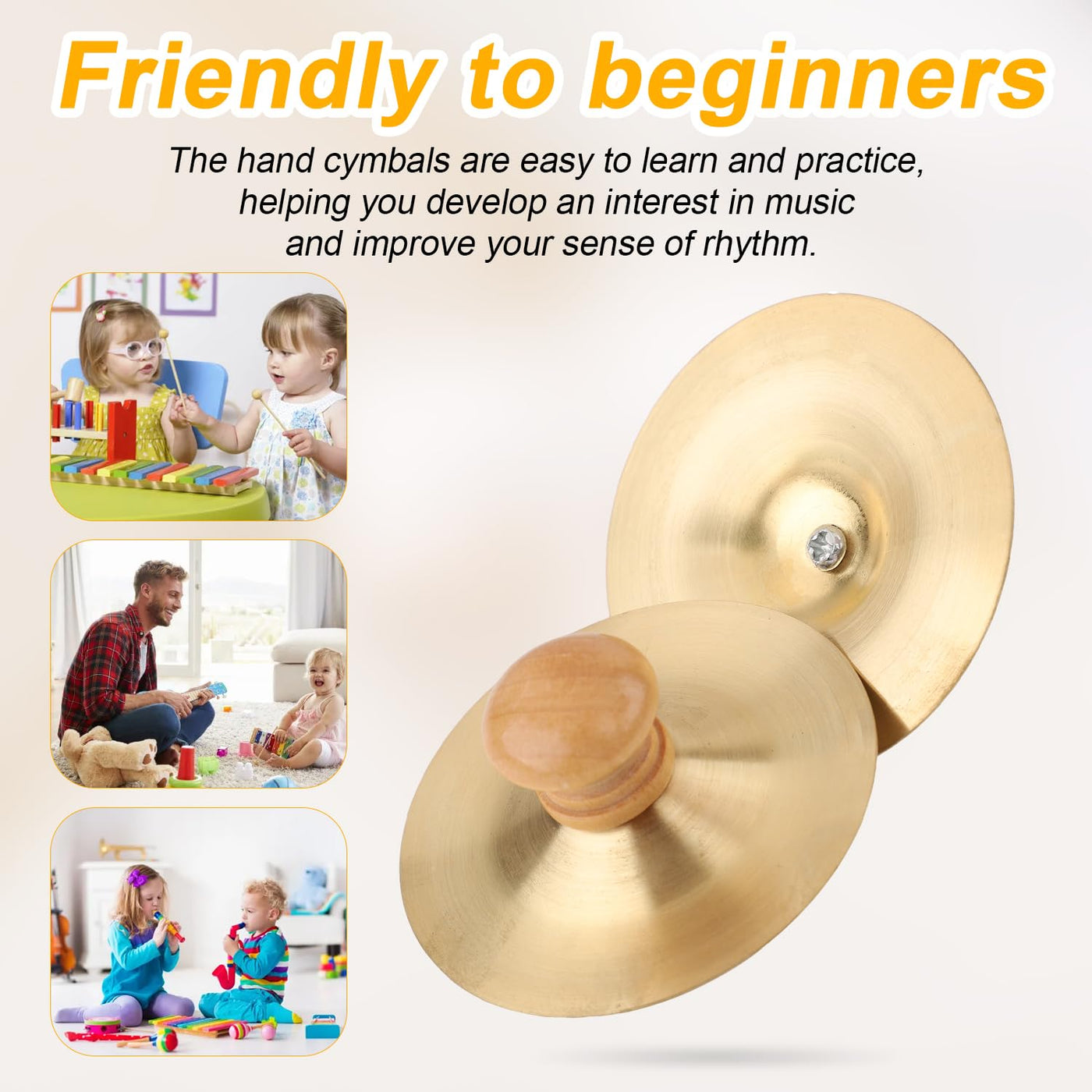 Specification: Color: Gold Material: Copper, Wood Product Size: Diameter: 7Cm/2.76 Inch Package Details: 2 X Small Hand Cymbals Note: Due To Manual Measurement, The Size And Weight May Have A Certain Error. Due To The Difference Between Monitors, There May Be A Slight Color Difference.