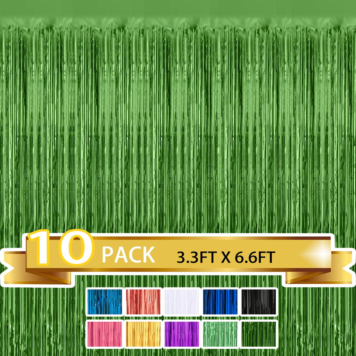10 Pack Green Metallic Tinsel Foil Fringe Curtains Party Photo Backdrop Party Streamers For Birthday,Graduation,New Year Eve Dec
