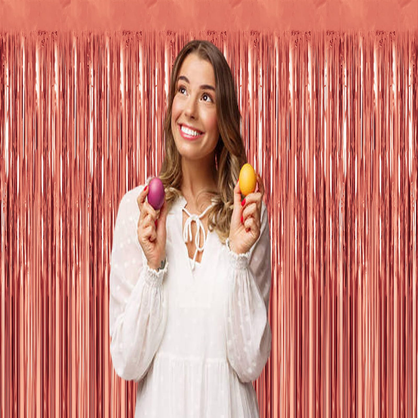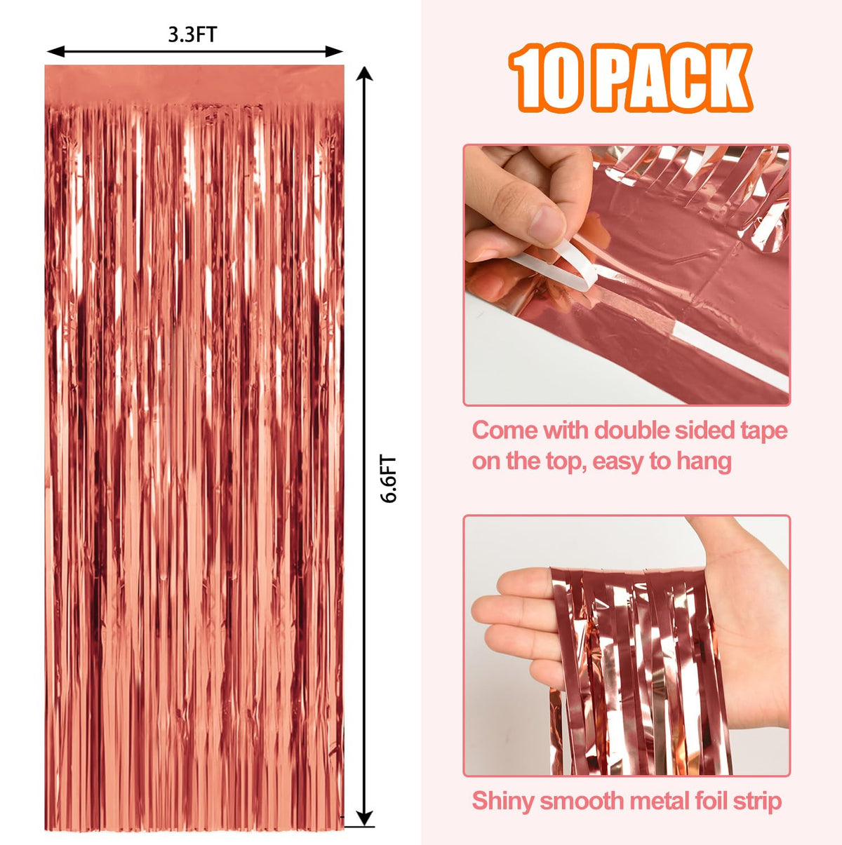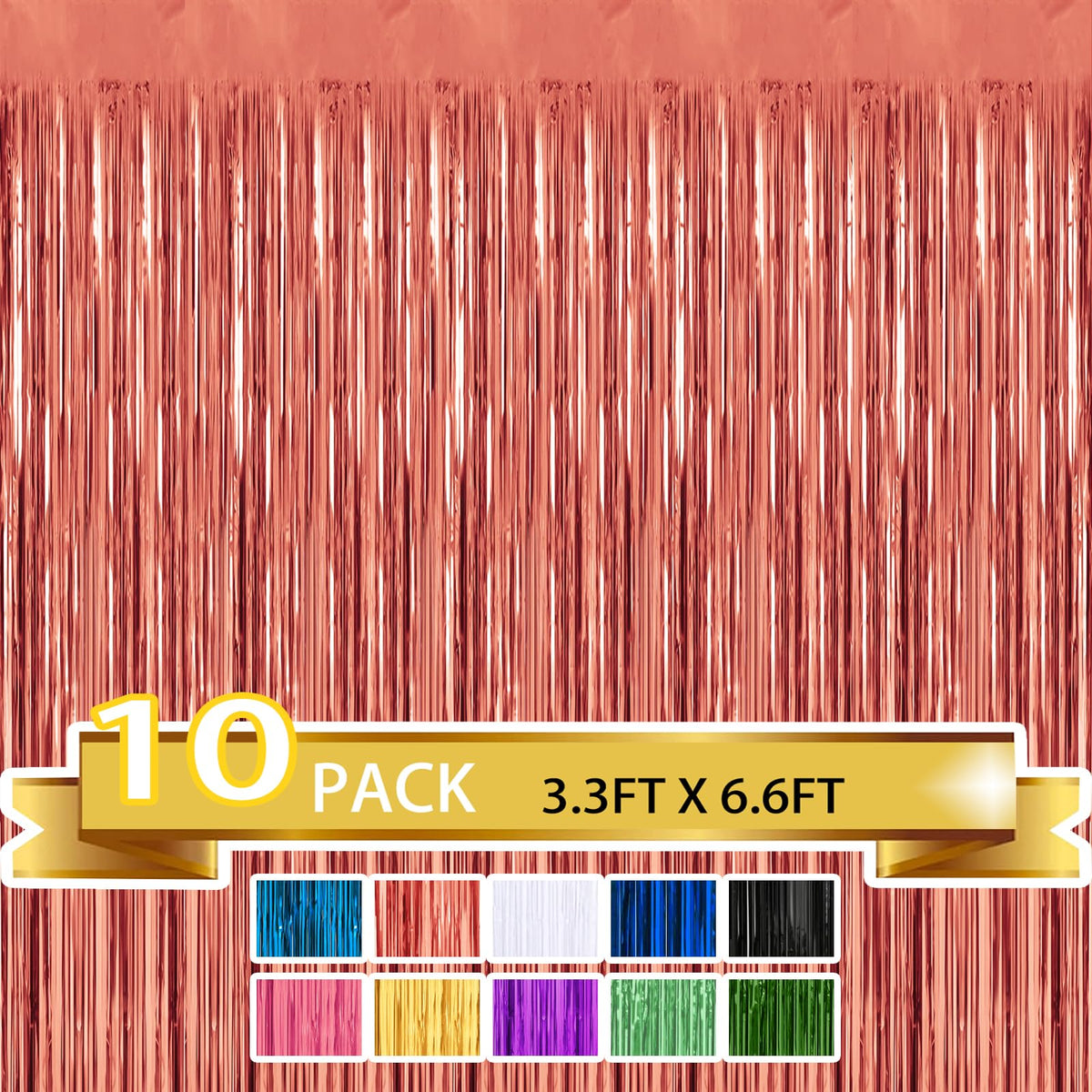 10 Pack Rose Gold Metallic Tinsel Foil Fringe Curtains Party Photo Backdrop Party Streamers For Birthday,Graduation,New Year Eve
