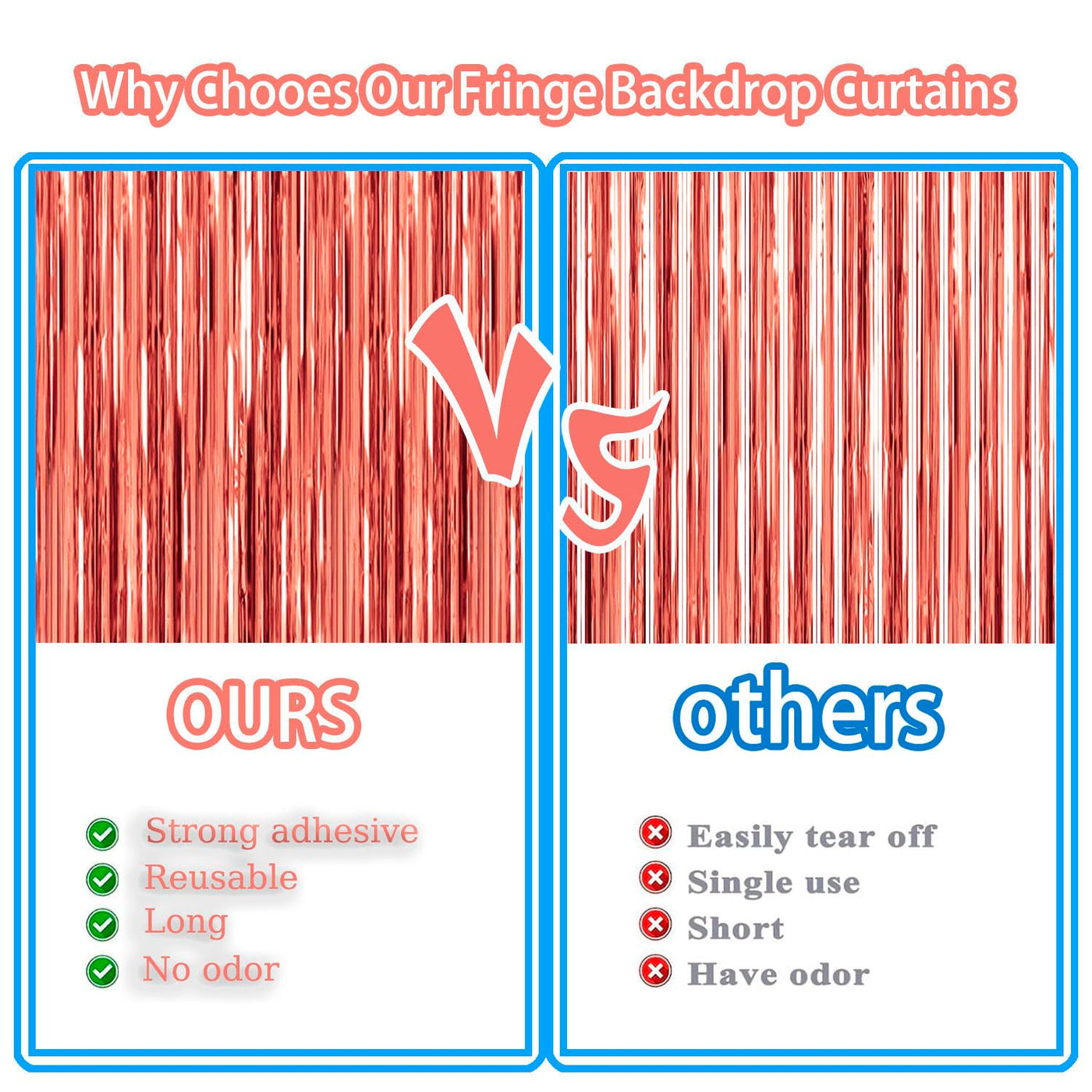 ?Package Content? 10 Pieces Of Fringe Curtains, 3.3Ft Wide And 6.6Ft Long. The Adhesive Strip Is Included At The Back Side Of The Curtains, So You Can Stick The Curtains To Your Walls, Windows, Or Doors With Ease. | ?Celebration Party Decorations? These Unique Fringe Curtains Will Give Your Party An Atmosphere Of Joy And Happiness. Want To Decorate Your Party? Choose Our Shiny Fringe Backdrop Curtains! | ?Easy To Use? Paste Or Hang Them On A Smooth Surfaces , It Doesn'T Take A Lot Of Effort To Paste Them, Just Tear Off The Back Of Double-Sided Adhesive Tape And Paste Them Gently. | ?Wide Applications? The Foil Backdrop Are Wonderful Finishing Touch For Any Theme Party Such As Birthday, Baby Shower, Wedding, Engagement, Bridal Shower, Bachelorette, Holiday Celebration, Halloween, Graduation, Anniversary, Hollywood Party, Homecoming, Christmas Or New Year, Etc. | ?Premium Material? The 10 Pack Tinsel Backdrops Are Made Of High-Quality Shiny Tinsel, Non-Toxic, Odorless, And Non-Fading, Safe For Families With Children And Pets. The Curtains Are Thicker And Heavier, Which Means They Are Less Likely To Wrinkle Or Crease, Making Them Durable And Long-Lasting. Moreover, Our Foil Fringe Streamers Are Made Of Sturdy And Flexible Pet Material, Making Them Resistant To Breaking Or Tearing.