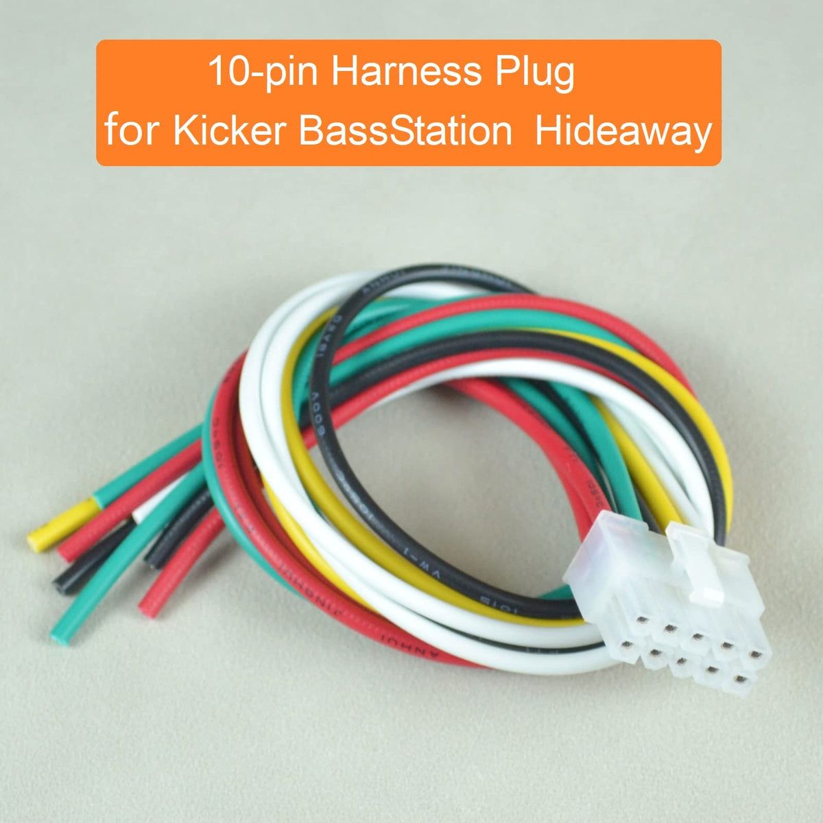 Product Function:10 Pin Power And Speaker Input Harness Plug, With Power, Ground, Remote And Left Right Speaker Input Wires1,3,5,7,92,4,6,8,101 White = Left Positive2 White = Left Negative3 Yellow = Right Positive4 Yellow = Right Negative5 Black = Ground6 Black = Ground7 Green = Remote8 Green = Leave Blank9 Red = Power10 Red = Powercompatible With:Fit For Kicker Bassstation Bass Station Pt10 Pt250 11Pt8 11Phd12 11Ph12 11Hs8 S 46Hs10Product Features:12'' / 30 Cm Length Wire 18 Gauge Copper Wire