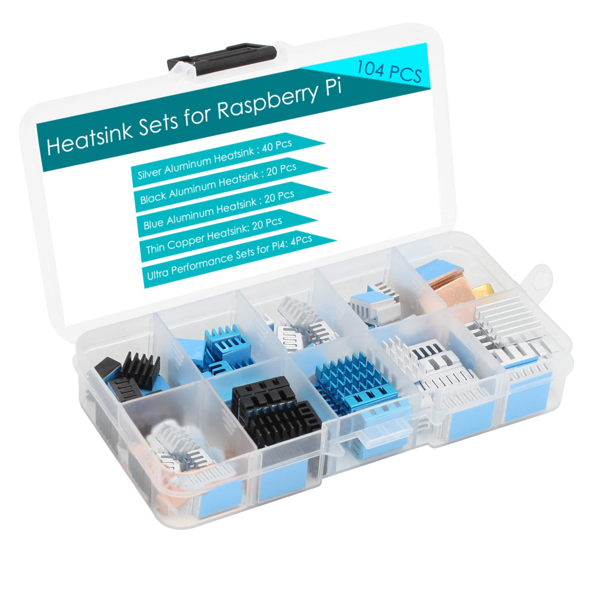 100 Pcs High Performance Raspberry Pi Heatsink Kit Aluminum And Copper Heatsink For Raspberry Pi 4B, 3B+, 3B, 2B, With Thermal Conductive Adhesive Tape. Multiple Size And Color Options: Black: 3 Pcs 14Mm X 14Mm X 4Mm Aluminum Heat Sink 3 Pcs 14Mm X 10Mm X 5Mm Aluminum Heat Sink 6 Pcs 9Mm X 9Mm X 5Mm Aluminum Heat Sink Silver-1: 5 Pcs 14Mm X 14Mm X 7Mm Aluminum Heat Sink 5 Pcs 14Mm X 10Mm X 5Mm Aluminum Heat Sink 10 Pcs 9Mm X 9Mm X 5Mm Aluminum Heat Sink Silver-2: 5 Pcs 14Mm X 14Mm X 5Mm Aluminum Heat Sink 5 Pcs 14Mm X 10Mm X 5Mm Aluminum Heat Sink 10 Pcs 9Mm X 9Mm X 5Mm Aluminum Heat Sink Blue: 3 Pcs 14Mm X 14Mm X 4Mm Aluminum Heat Sink 3 Pcs 14Mm X 10Mm X 5Mm Aluminum Heat Sink 6 Pcs 9Mm X 9Mm X 5Mm Aluminum Heat Sink Copper: 10 Pcs 12Mm X 12Mm X 1Mm Copper Heat Sink 10 Pcs 14Mm X 14Mm X 1Mm Copper Heat Sink