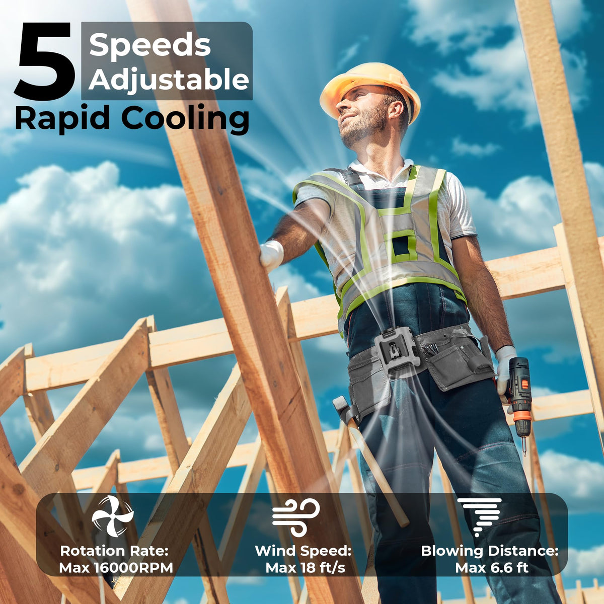 10000Mah Portable Waist Clip Fan,40H Cooling Personal Wearable Fan,5 Speeds 16000Rpm Belt Fan,Rechargeable Hands Free Neck Fan W