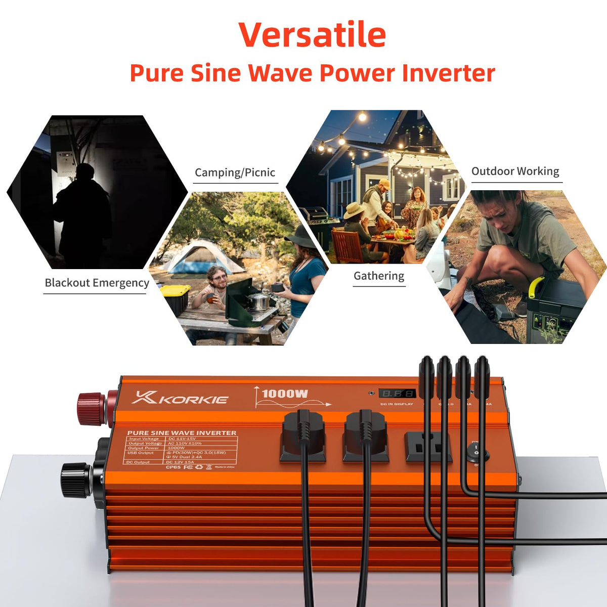 1000W Pure Sine Wave Inverter, Car Power Inverter, 12V Dc To 110V Ac Power Converter, Emergency Power Inverter With Type-C, Dual