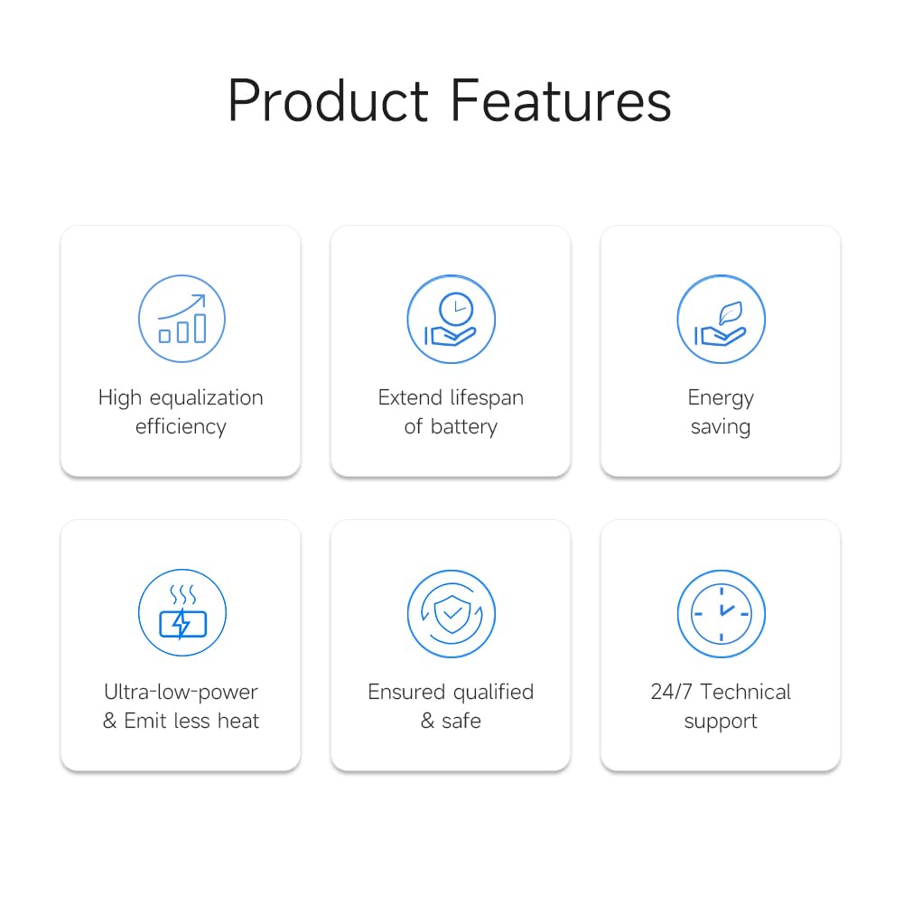 1.Product Parameters Product Name:100Balance 1A Active Equalizer Module Equalizing Current:: 0.01~1.5A (Peek Current 1.5A) Equalization Mode: Capacitive Active Equalization Suitable : Li-Ion Battery Pack Or Lifepo4 Battery (Not For Lithium Titanate Battery) Voltage: Adaptive With 3~16 String Lithium Battery Pack Working Power Consumption: