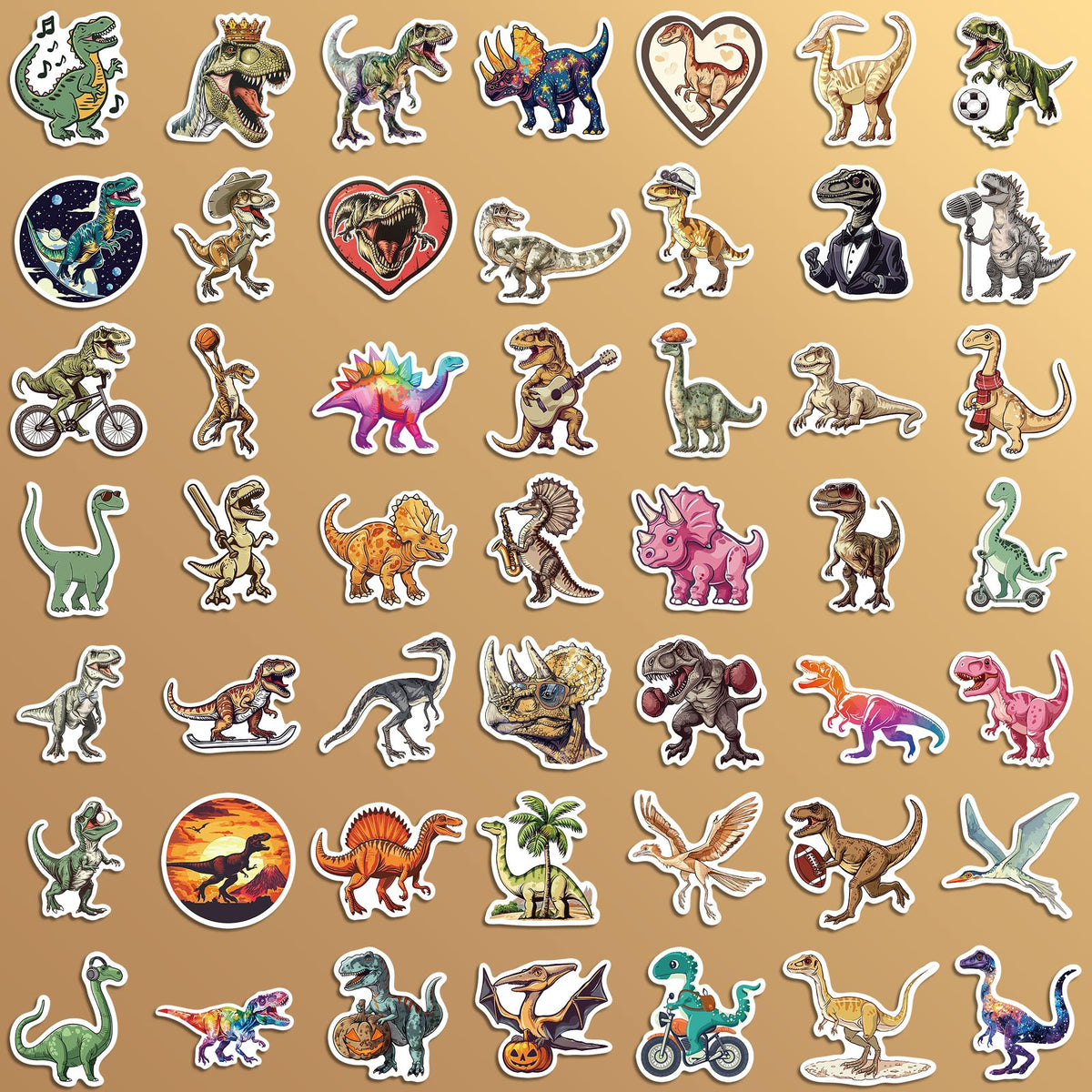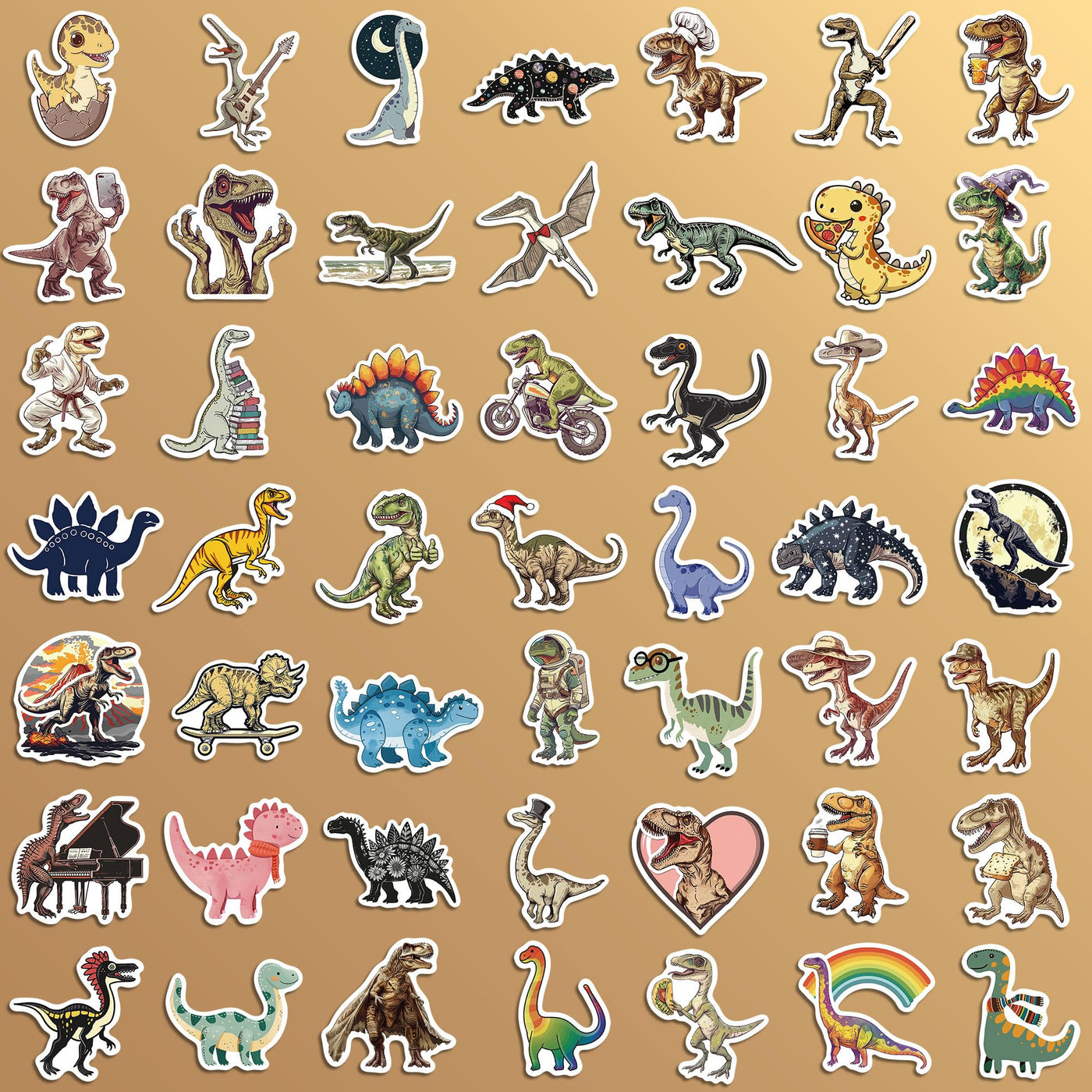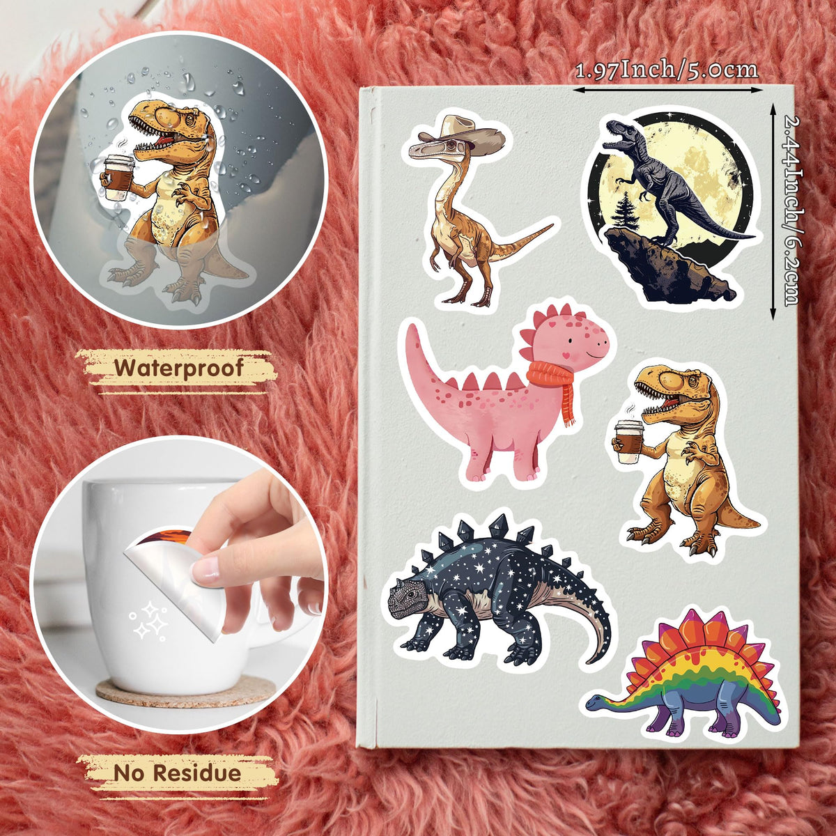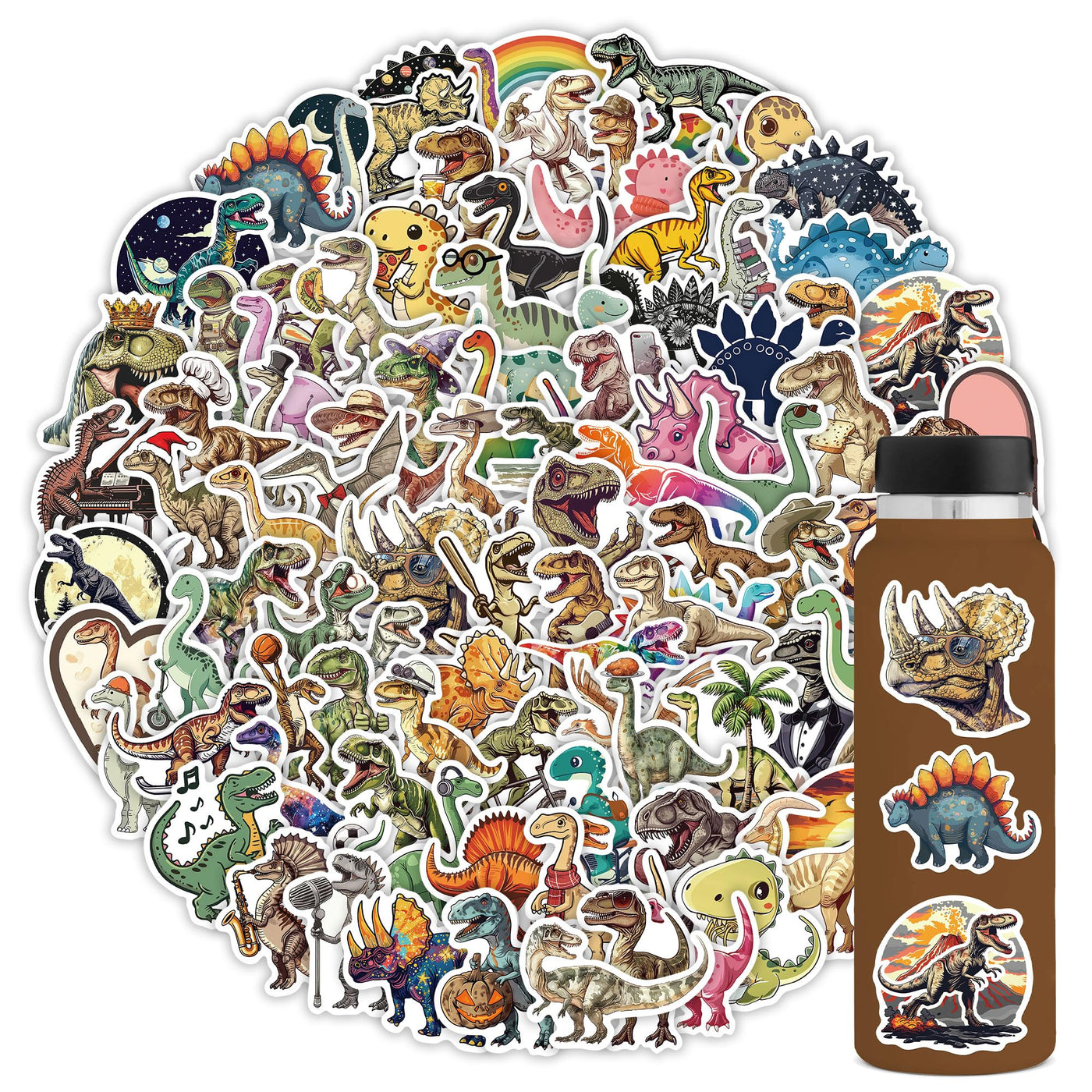 Q: How can I use these dinosaur stickers?A: These stickers can be used on various items such as hydroflasks, laptops, water bottles, skateboards, mugs, cars, luggage, bicycles, motorcycles, and for room decoration.