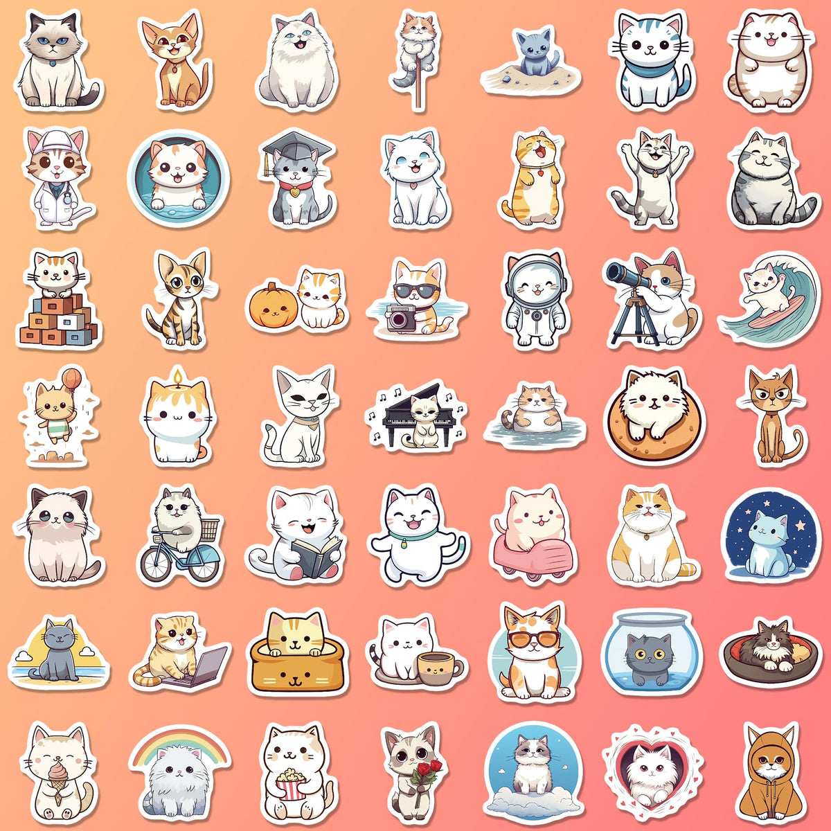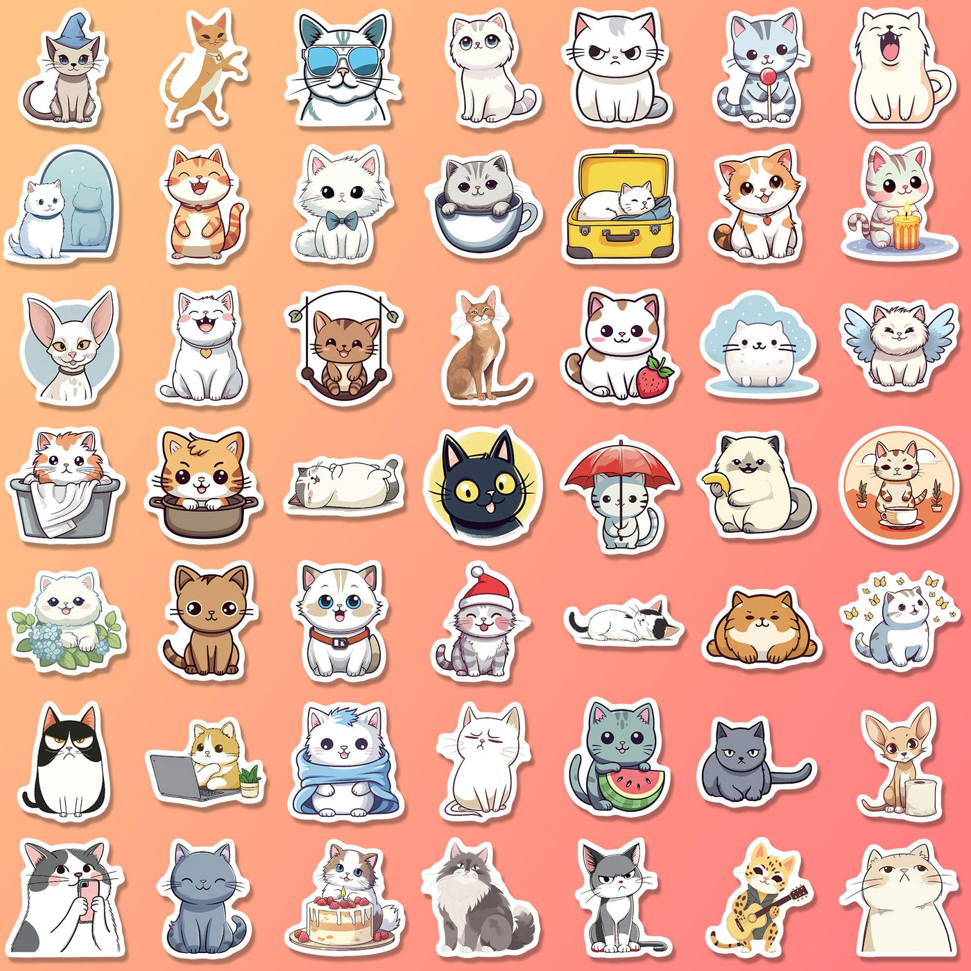 102 Pcs Funny Cat Stickers,Cute Cat Stickers For Adults,Unique Designed Cartoon Vinyl Waterproof Aesthetic Cat Stickers For Water Bottles Laptop Computer Skateboard
