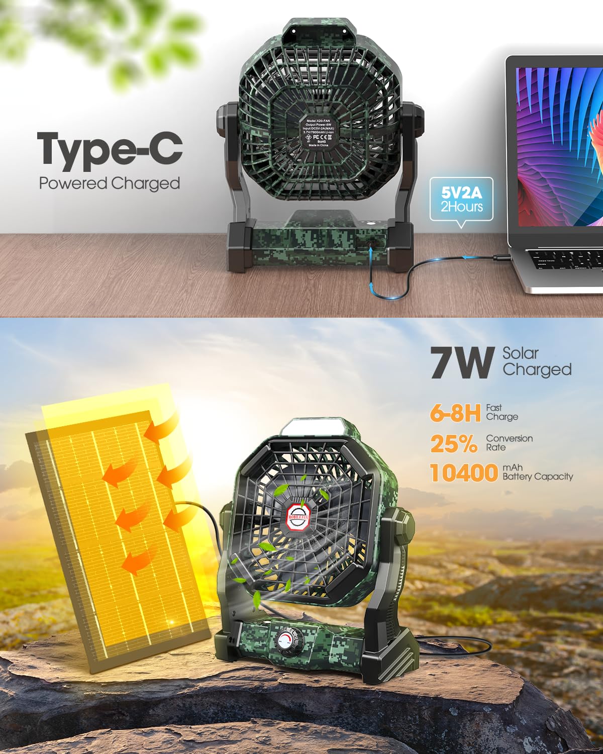 Advantage:&Nbsp;-10400Mah Large Capacity Battery&Nbsp;-Quiet And Powerful Wind&Nbsp;-Stepless Speed Regulation&Nbsp;-3 Level Highlight Led Lantern&Nbsp;-Lightweight And Portable&Nbsp;-Sturdy And Drop Resistant&Nbsp;-------------------------------&Nbsp;Specifications:&Nbsp;Battery Capacity:10400 Mah&Nbsp;Working Time: 8-36 Hours (Depending On Different Speeds)&Nbsp;Fully Charged Time: About 6 Hours&Nbsp;Motor Working Voltage: 5V&Nbsp;Motor Working Current: 2A&Nbsp;Weight: 20.4 Ounces (Compact And Lightweight For Carry.)&Nbsp;Dimensions: 8.3 X 4.7 X 9.1 Inches&Nbsp;Input Display: Four Gear Led Indicator&Nbsp;Charging Interface: Type-C -Usb&Nbsp;-------------------------------&Nbsp;Whats Inside The Package?&Nbsp;1 Fan&Nbsp;1 X Usb Type-C Cable&Nbsp;1 X User Manual