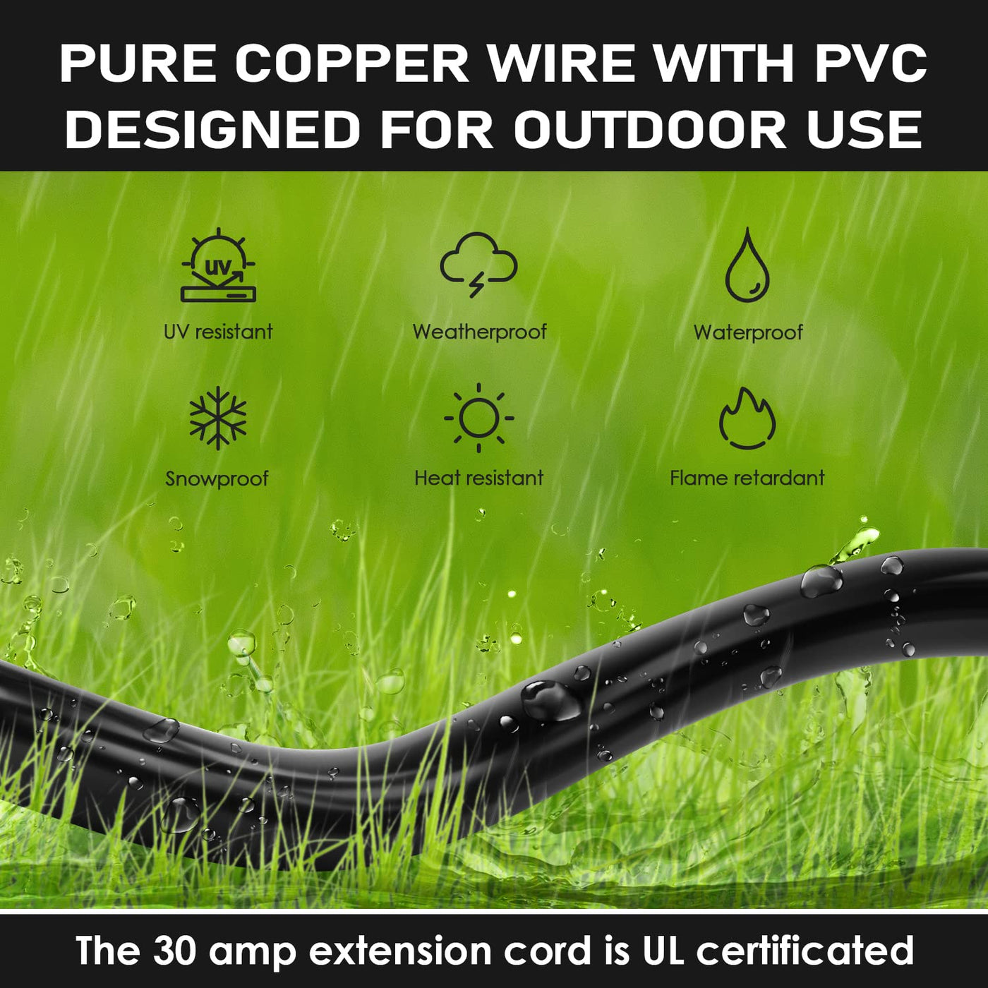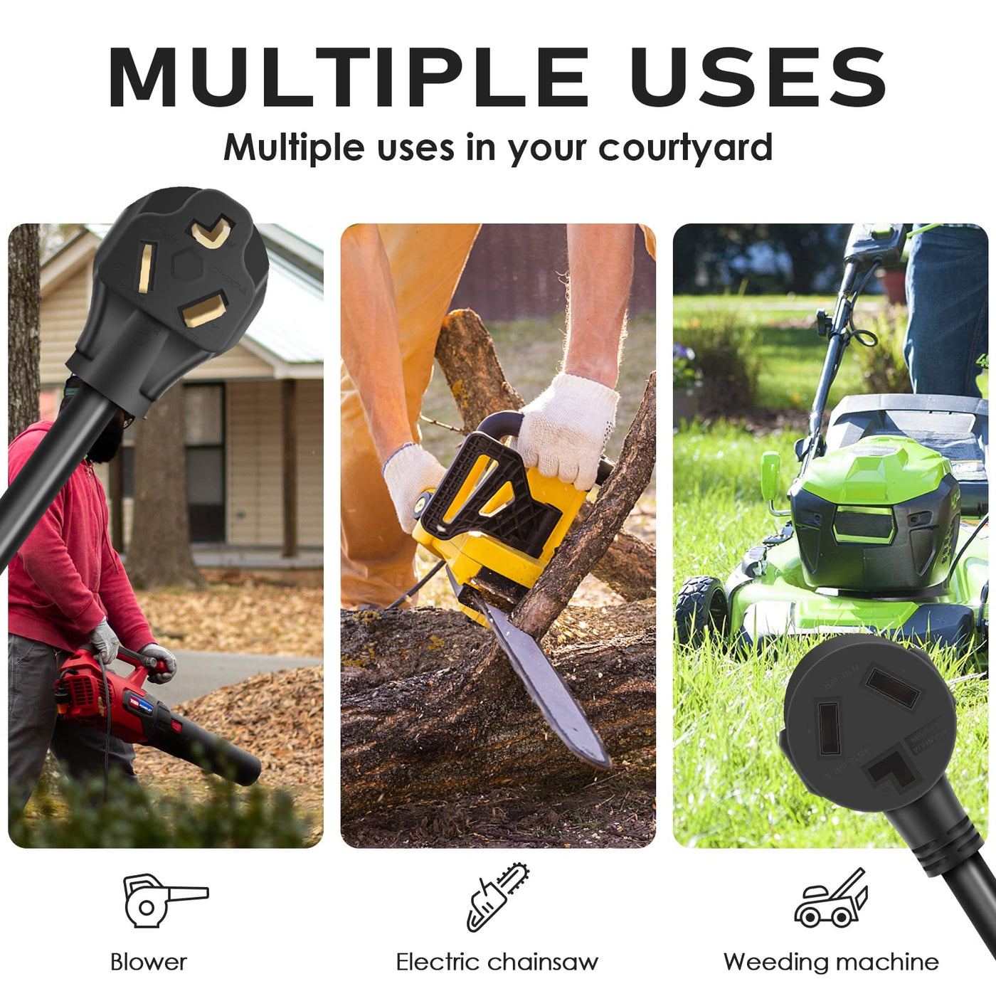 Q: Is the 10FT dryer extension cord safe to use outdoors?A: While the cord is durable and designed to resist various elements, it is recommended to avoid using it when wet and to keep it away from children and pets.