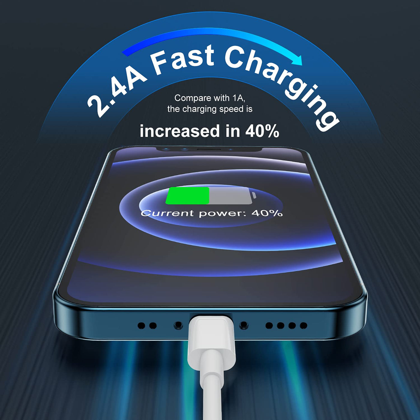 Q: How fast does the 10ft Apple Charger Cable charge devices?A: This charger cable supports fast charging capabilities, allowing for a charging current of up to 2.4A. This means you can enjoy quicker charging times compared to standard cables, making it ideal for users who need to charge their devices rapidly.