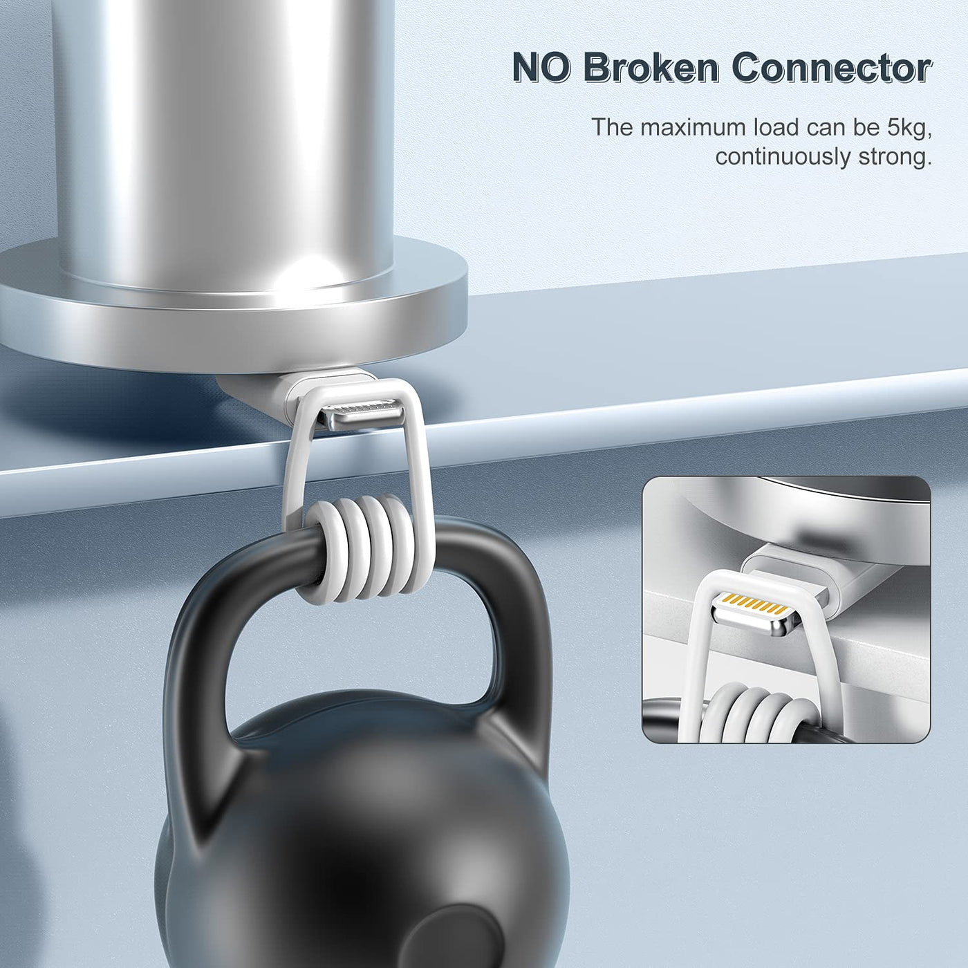 Q: Is the 10ft Apple Charger Cable durable and long-lasting?A: Yes, the 10ft Apple Charger Cable is designed for durability. It has been tested to withstand over 12,000 bends and has a lifespan of 10,000 plug and unplug cycles, making it 12 times stronger than many standard cables.
