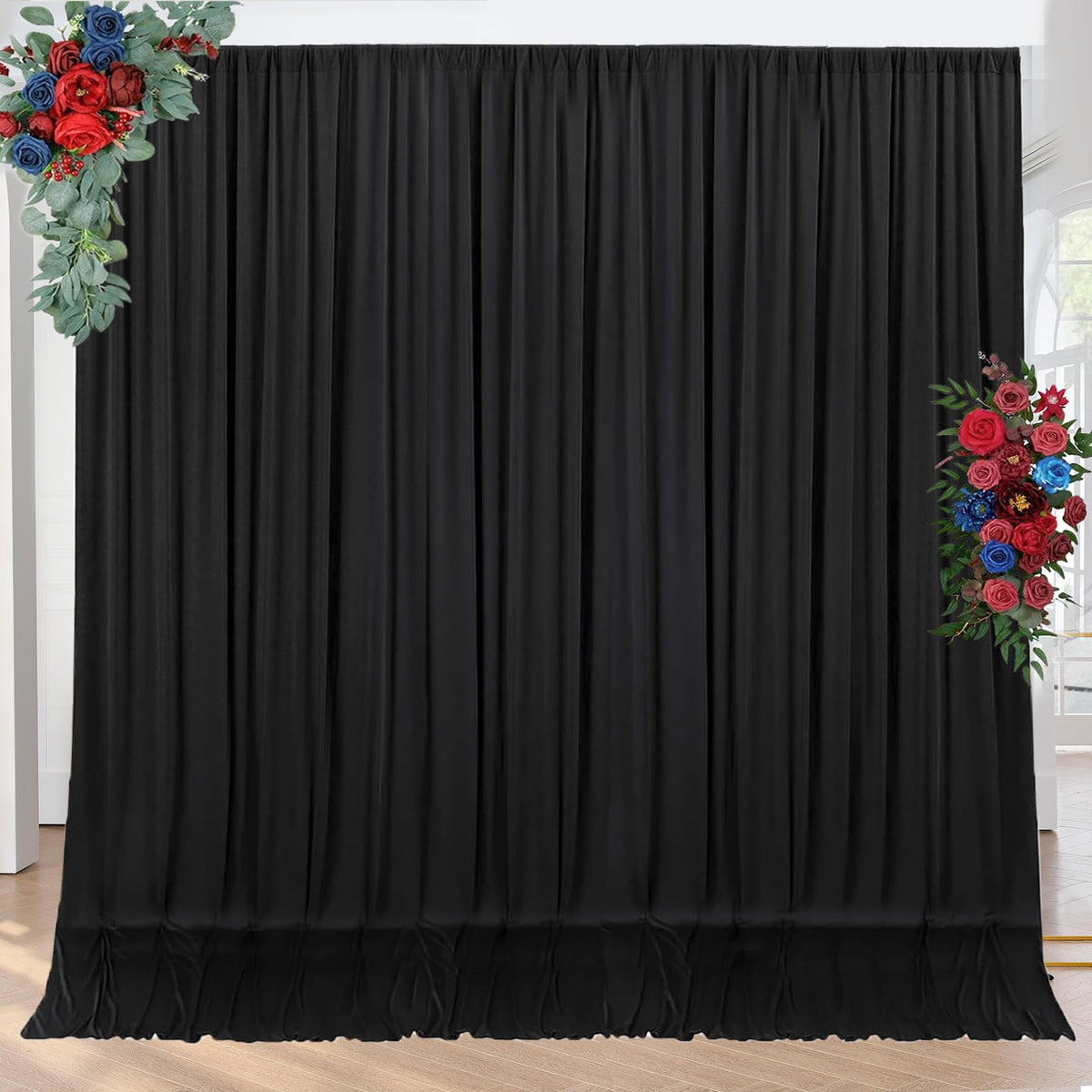 10Ft X 10Ft Wrinkle Free Black Backdrop Curtains For Parties, 2 Panels 5Ftx10Ft Polyester Photo Backdrop Drapes For Wedding Birt