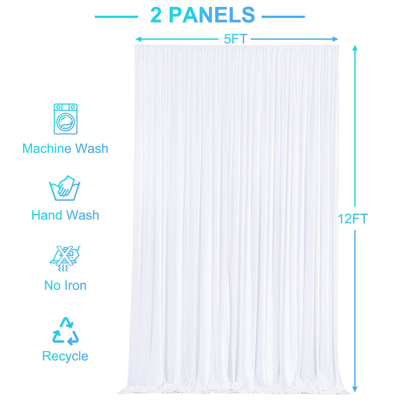 - Q: What size are the backdrop curtain panels? A: Each panel measures 5 feet in width and 12 feet in height, making them suitable for a variety of events and settings.