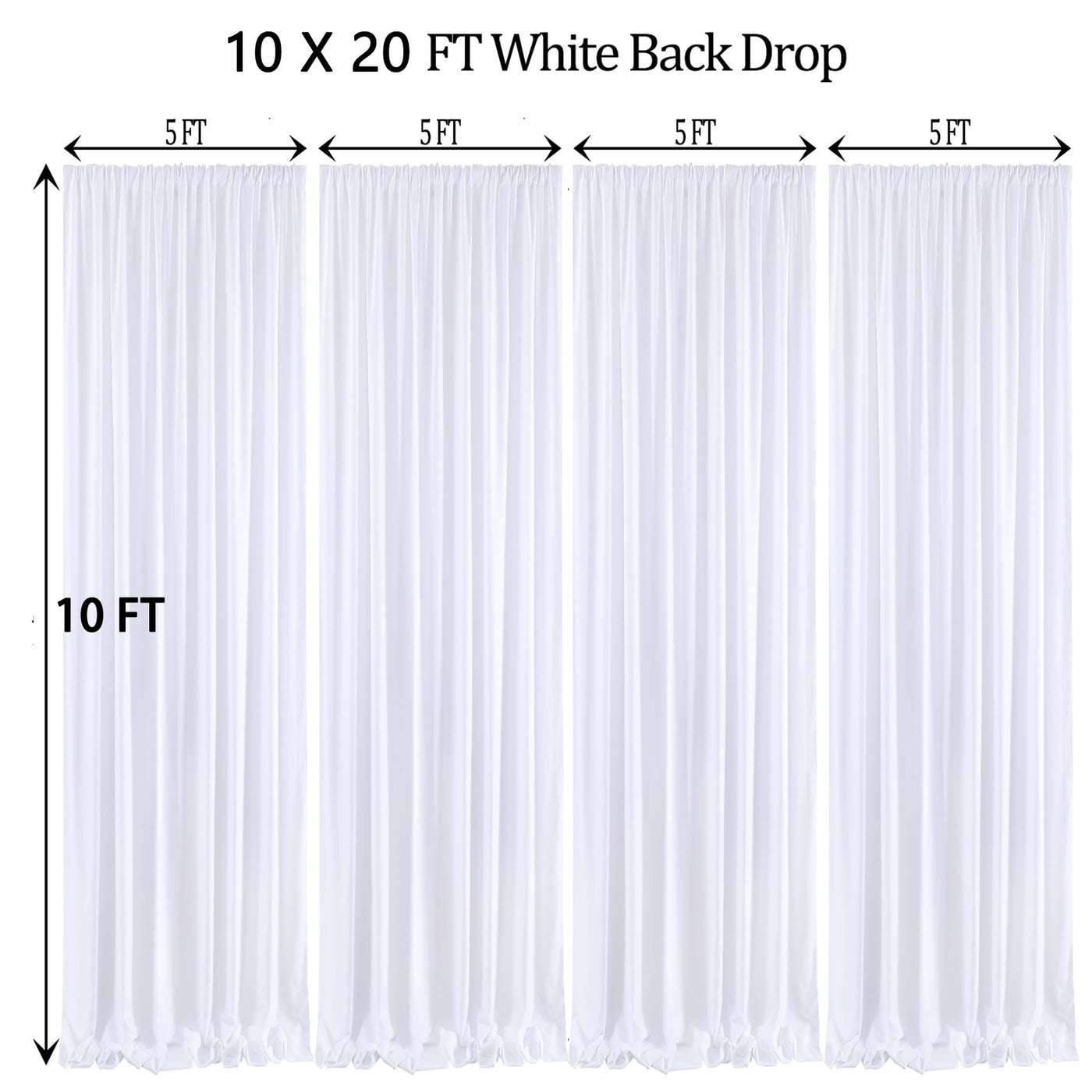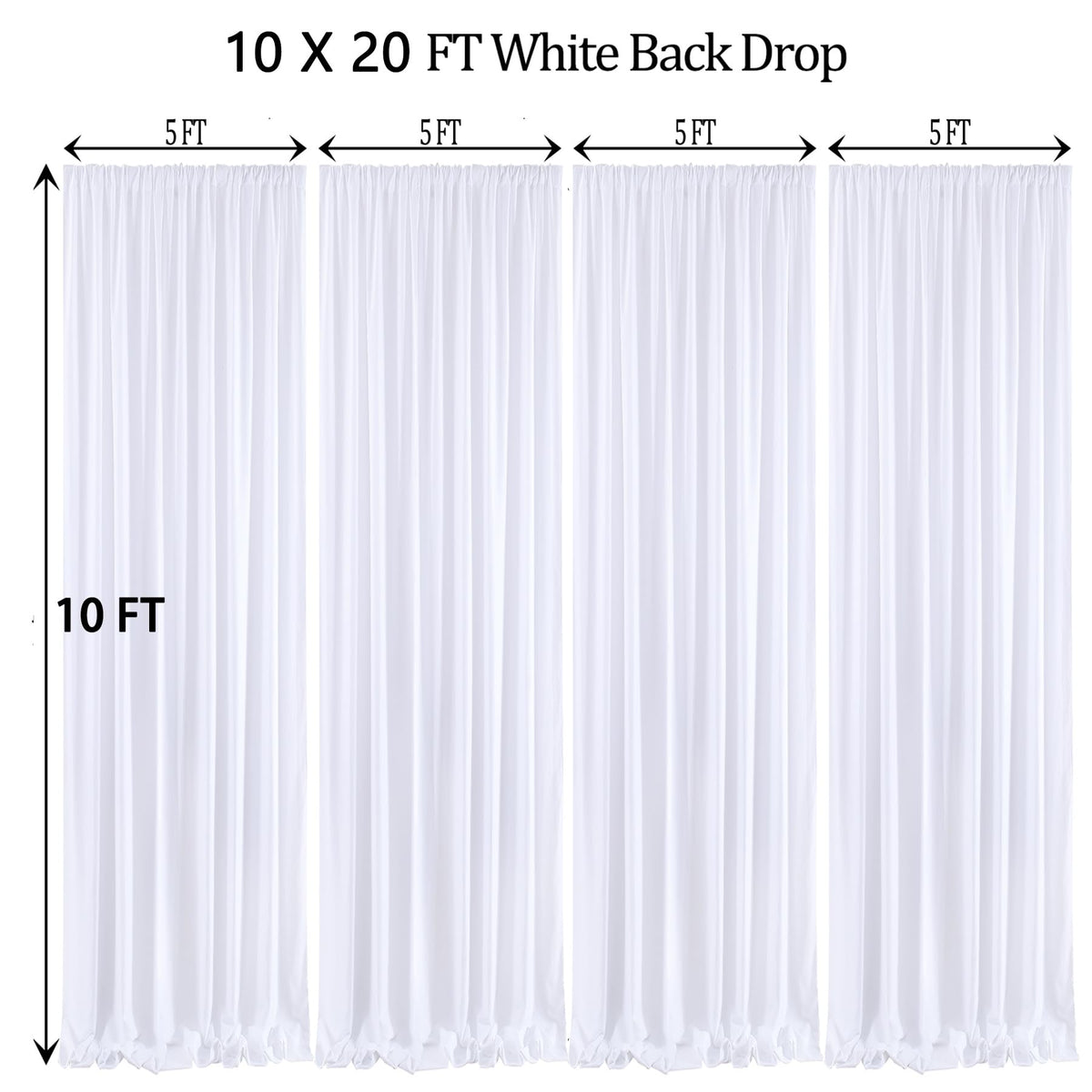10Ft X 20Ft White Backdrop Curtain Panels For Parties, Thick Wrinkle Resistant Polyester Wedding Backdrop Drapes For Party Birth