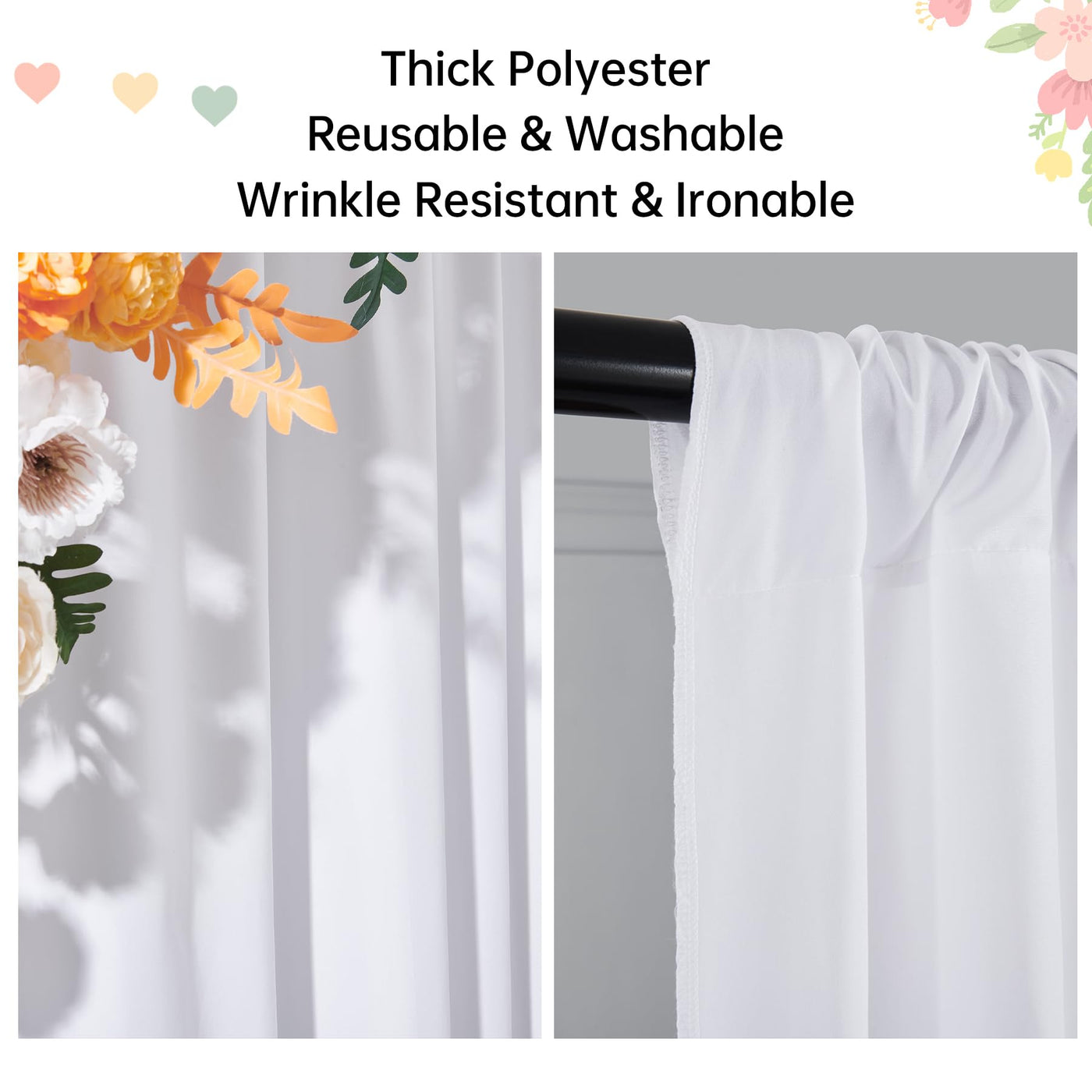 Q: What types of events can I use these backdrop curtains for?A: These white backdrop curtains are versatile and suitable for various occasions, including weddings, baby showers, birthday parties, photo shoots, receptions, and home decorations.