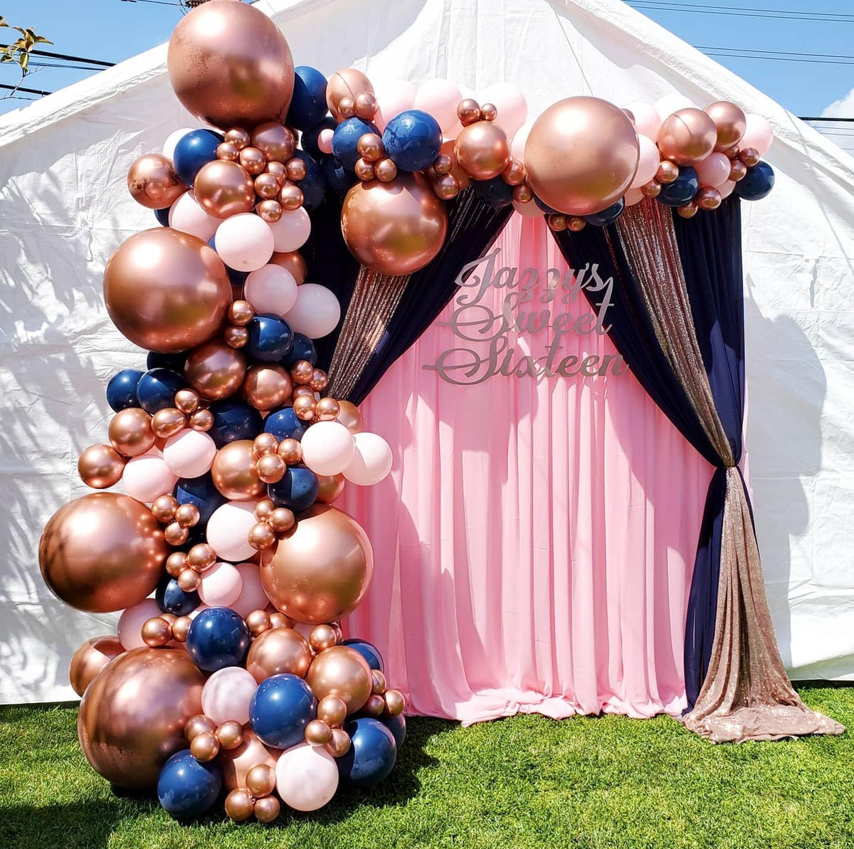 Q: Can I use this backdrop for outdoor events?A: While the polyester backdrop is suitable for indoor and outdoor events, it is best used in sheltered areas to avoid wind interference. It is perfect for parties, weddings, and baby showers.