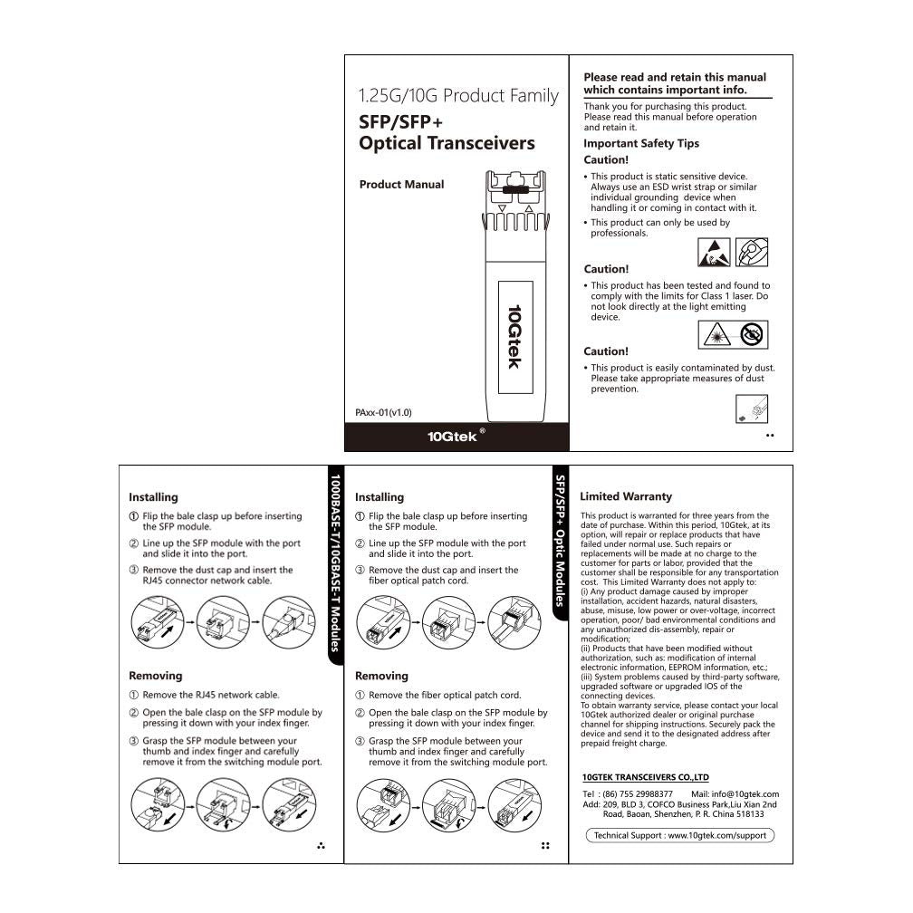 10Gtek 1.25/2.5/5/10G T Sfp+ To Rj45 Cat.6A Copper Transceiver, Auto Negotiation Sfp+ Ethernet Module, Up To 30 Meter, For Cisco