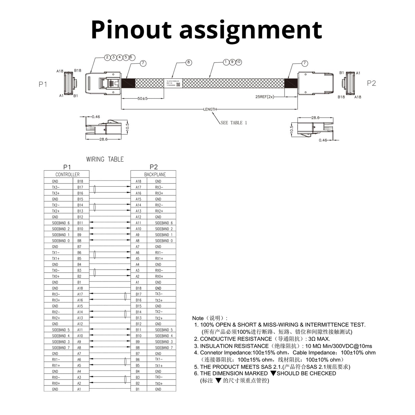 Internal Sas Sff-8087 To Internal Sas Sff-8087 Cable, 1-Meter(3.3Ft); | Impedance = 100 Ohms; | Up To 6Gbps Data Rates; | Customized For Mix-Connector-Link; | If The Cable You Need Is Not Above, Please Contact Us For Your Design.