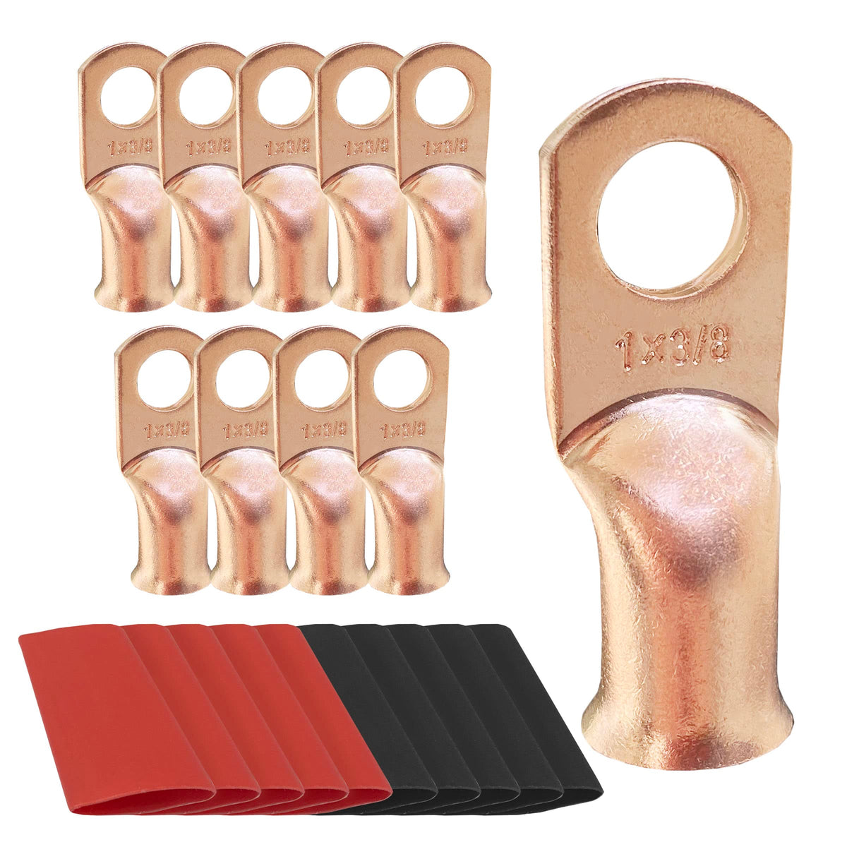 10Pcs 1 Awg 3/8 Ring Battery Lugs, Copper Lugs, Battery Cable Ends, Tubular Ring Terminals, Crimp Wire Ring Lugs, Battery Termin