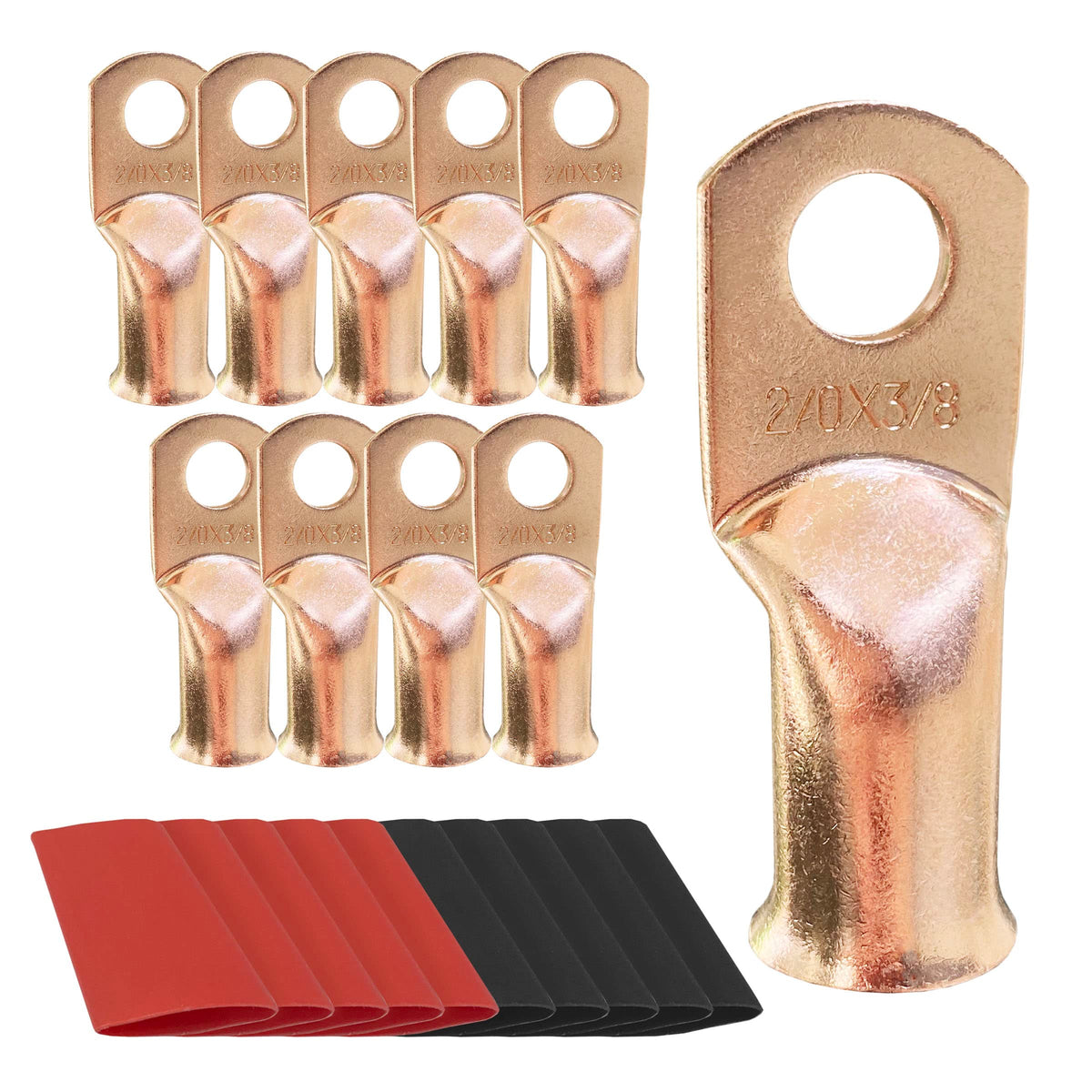 10Pcs 2/0 Awg 3/8 Ring Battery Lugs, Copper Lugs, Battery Cable Ends, Tubular Ring Terminals, Crimp Wire Ring Lugs, Battery Term