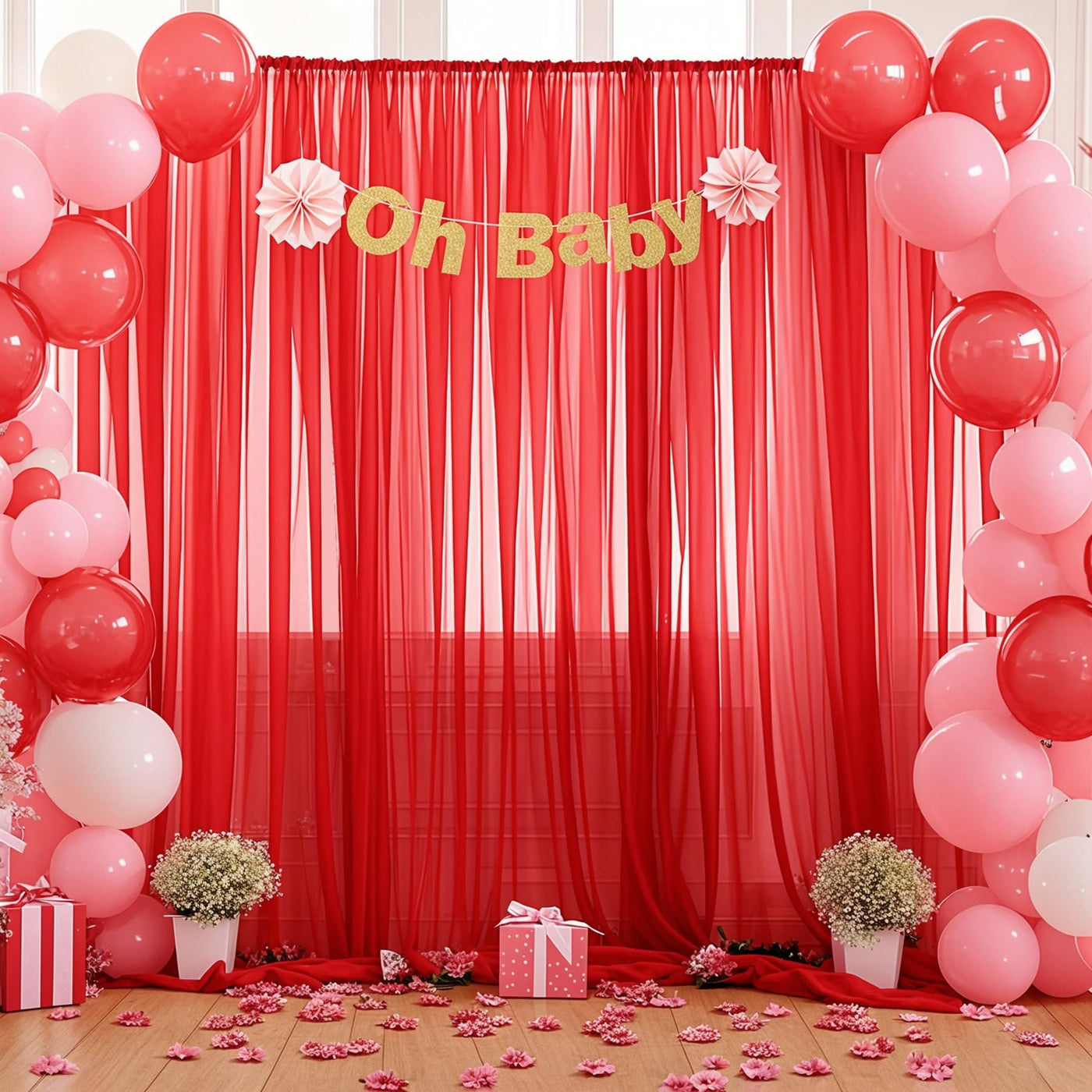 Q: What occasions are these curtains best suited for?A: These red tulle backdrop curtains are perfect for a variety of occasions, including weddings, baby showers, birthday parties, bridal showers, gender reveals, and other celebrations.