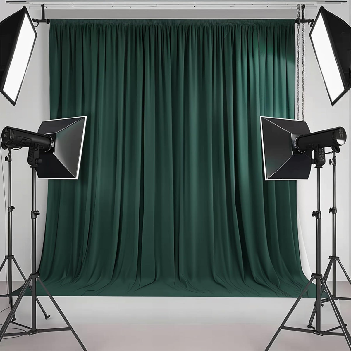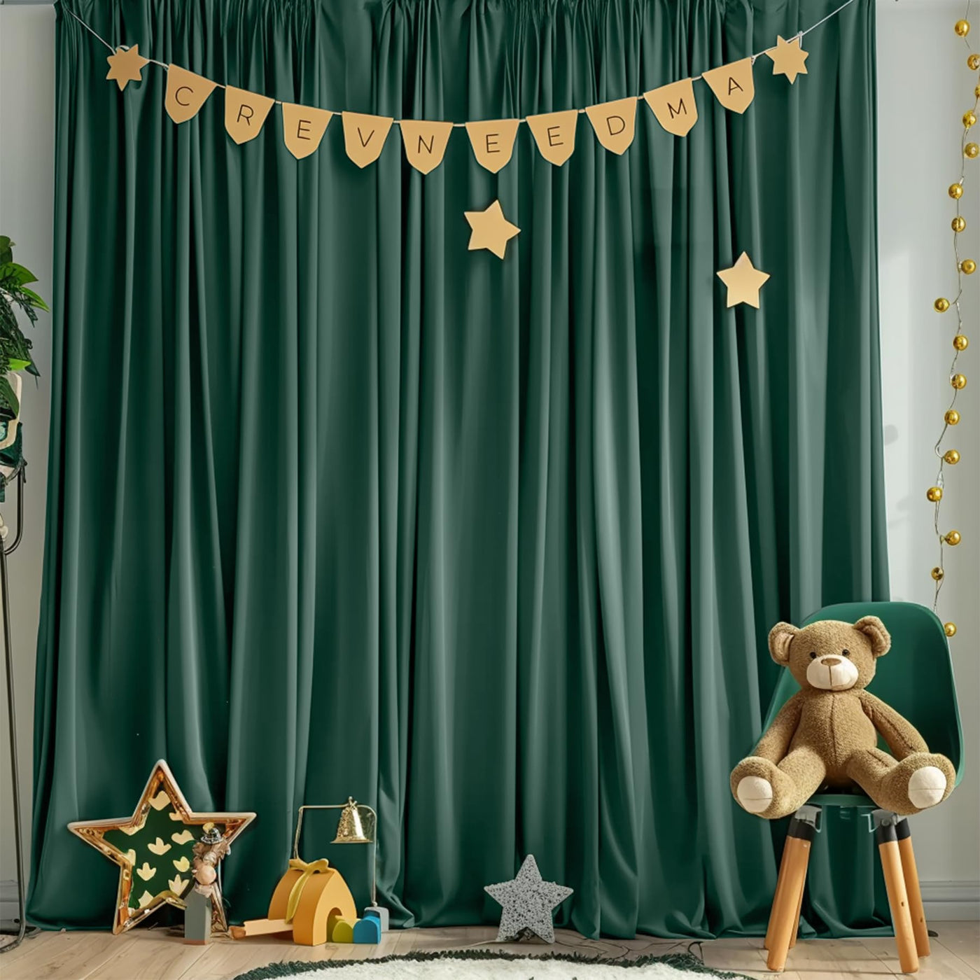 Q: Can these curtains be used for both indoor and outdoor events?A: Absolutely! The dark green backdrop curtains are versatile and suitable for both indoor and outdoor events, including weddings, parties, baby showers, and photo shoots.