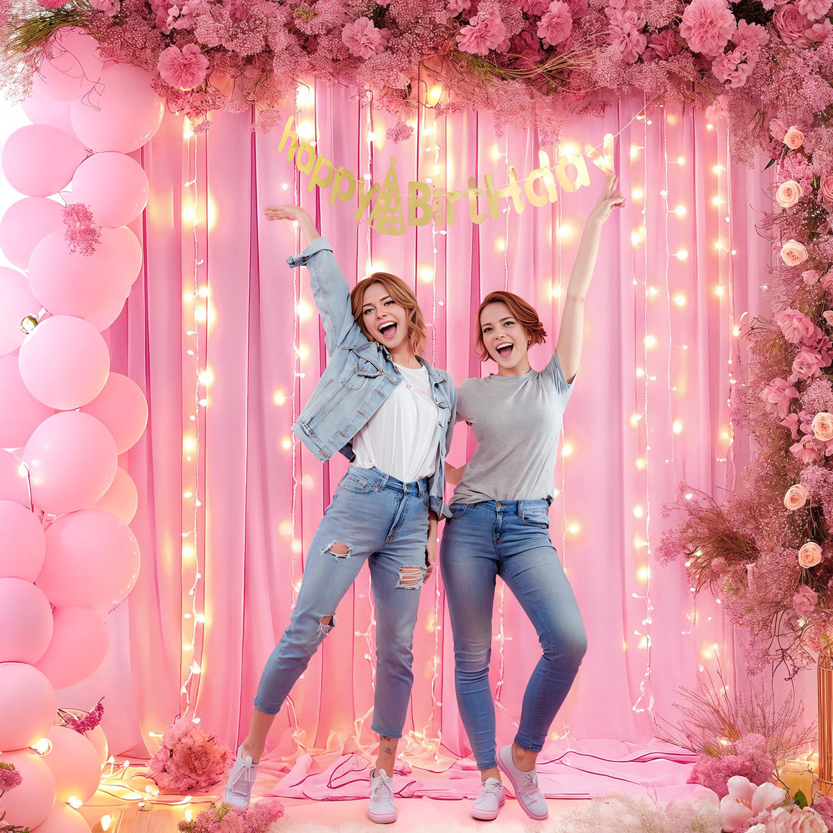 10X10Ft Pink Backdrop Curtains With Lights String For Baby Shower Parties, Wrinkle Free Curtains Backdrop Drapes For Wedding Gir