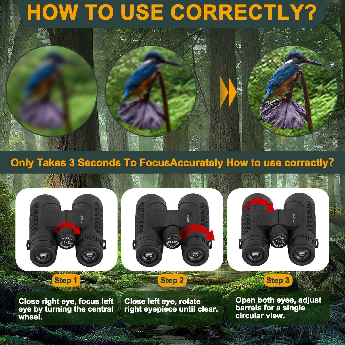 10X42 High Powered Compact Binoculars For Adults Kids, Low-Light Night Vision Binoculars, Bird Watching Hunting Travel With Phone Adapter, 3-Second Rapid And Accurate Focusing, Waterproof & Anti-Fog
