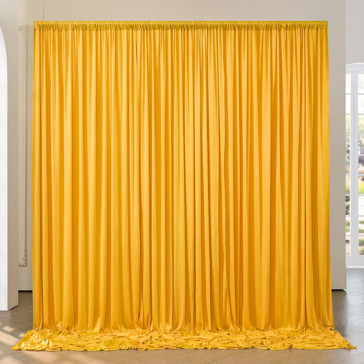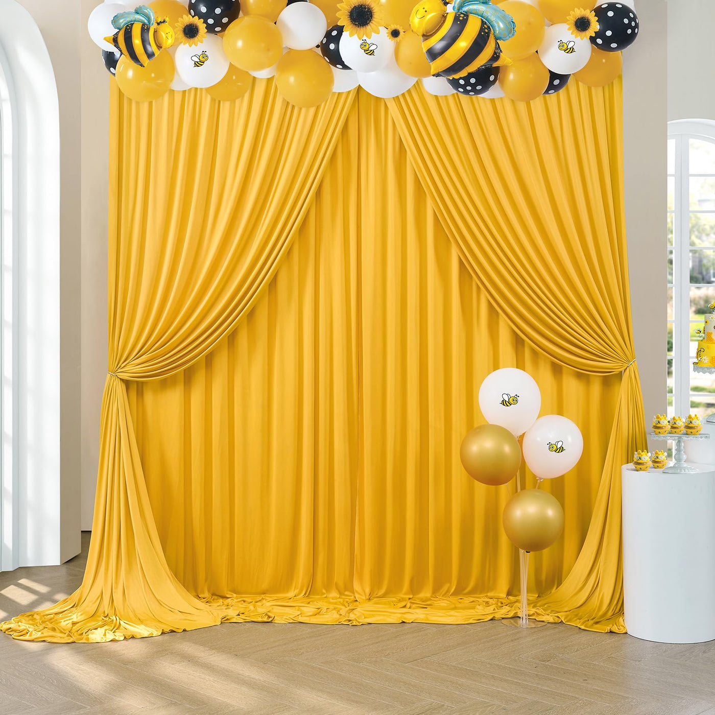 1. You Will Receive 2 Panels 5Ftx8Ft Mustard Yellow Backdrop Curtains For Parties. Totally 10Ft(Width) X 8Ft(Height). Cortinas Para Fiestas Decoracion. | 2. Wrinkle Free Fabric: Soft & Smooth; Drape Nicely; Washable; Ironable; Durable. You Can Keep It For Future Events. The Soft Fabric Backdrops Are Perfect To Create Beautiful Folds Or Leave It Flowing Loose Onto The Floor. | 3. Easy To Hang On: Come With A 4 Inches Rod Pocket. You Can Hang It On A Photo Backdrop Stand, Arch Backdrop Stand Or Balloon Arch Stand. | 4. Wide Compatibility: This Backdrop Drapes Are Perfect For Kinds Of Occassions. Such As Wedding Party Decoration, Baby Showers, Wild One Jungle Safari Birthday Theme Party Backdrops, Photobooth, Photoshoot, Reception Background, Graduation, Home Decoration, Drapes For Backdrops And More. | 5. Make You Party Pops: Decorate With Balloons, Party Streamers, Fun Banners, Balloon Arch Garland Kit, Butterflies, Paper Stars, Tissue Paper Flower Prop, Confetti And More To Complete Your Party Look.