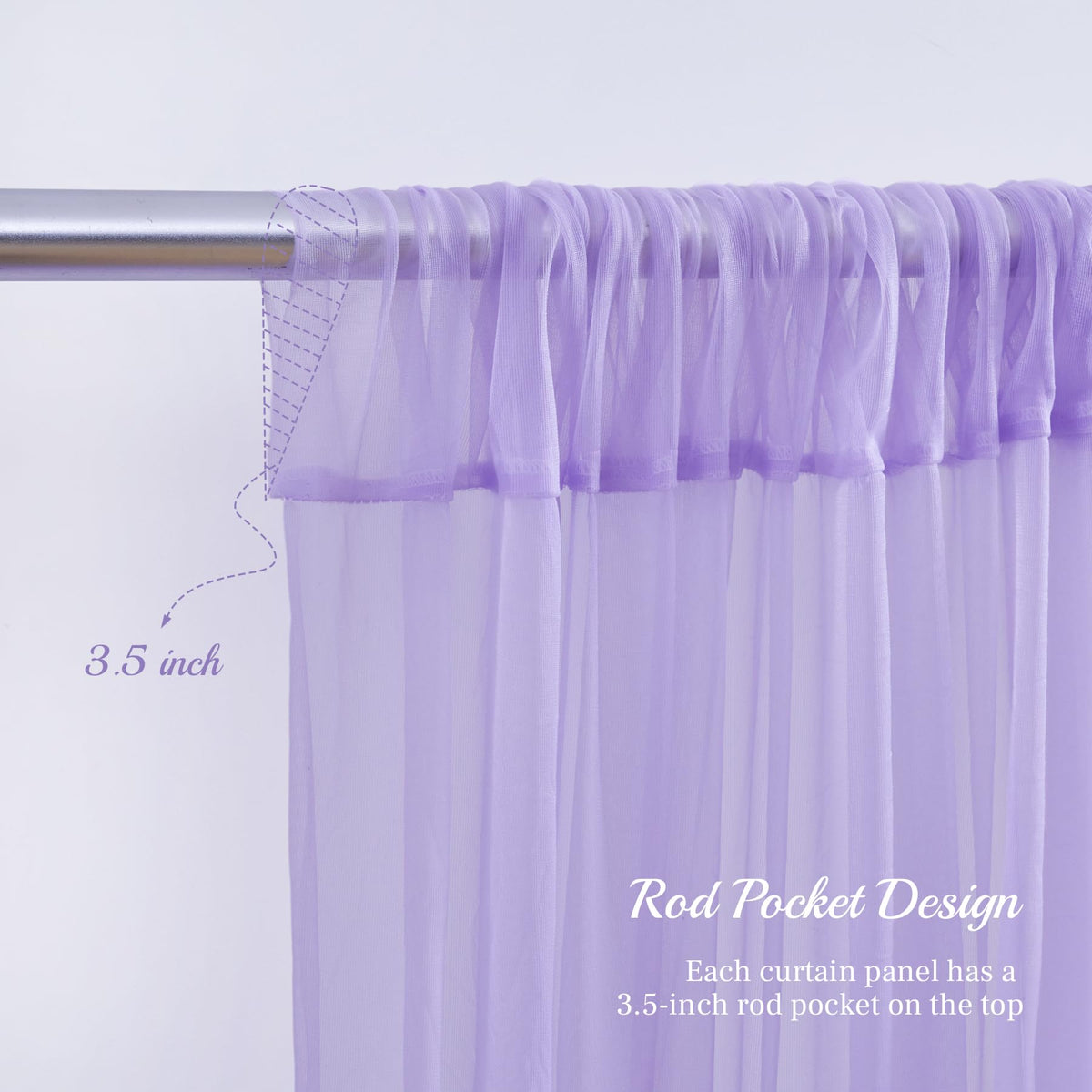 Q: What is the size of the tulle backdrop curtain?A: The tulle backdrop curtain measures 10ft x 8ft, consisting of 2 panels that are each 5ft wide and 8ft high.
