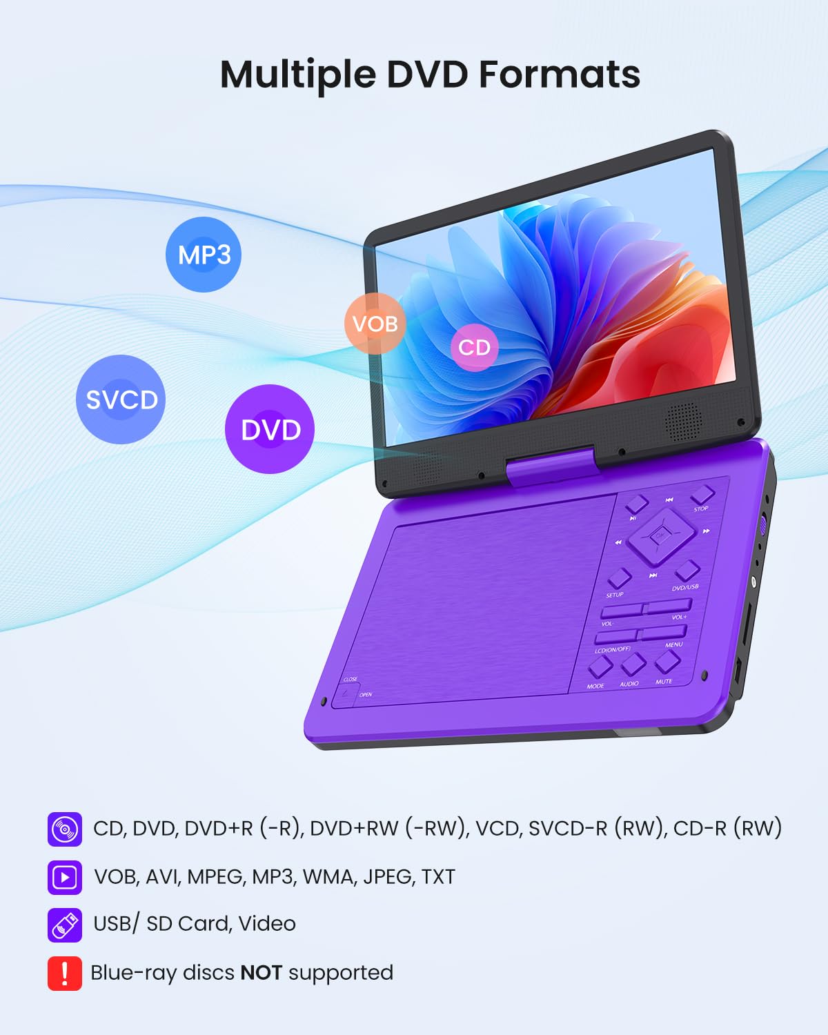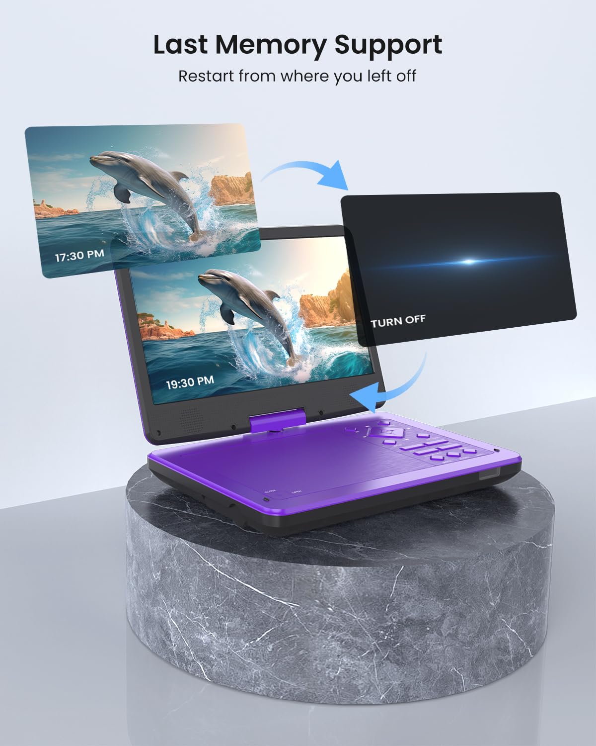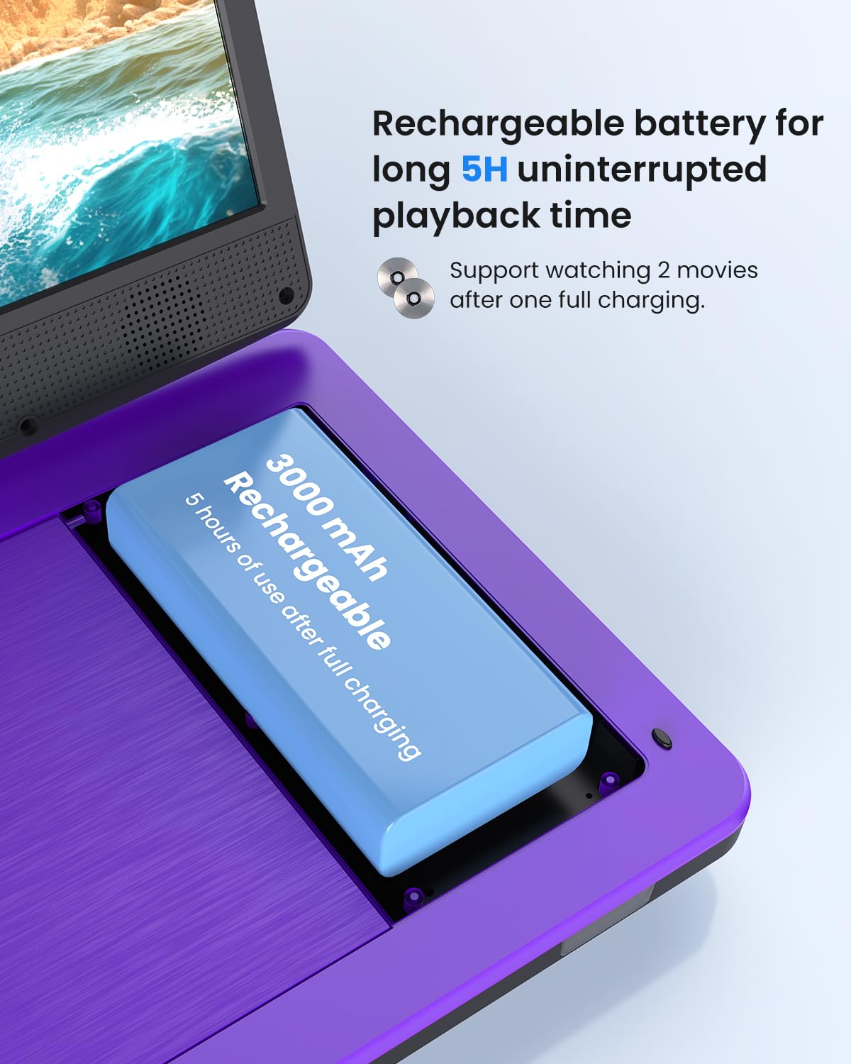 Magofly 12.5 Portable Dvd Player With10.1 Hd Ips Screen For Kids,Car Dvd Player With Headrest Mount, 360 Rf Remote Control, 2 Earphone Jacks, 5H Battery, Support Cd/Dvd/Sd Card/Usb,Region Free ??Upgraded Seamless 360 Rf Remote Control?: Elevate Your Portable Dvd Experience With Our Rf Remote, Effortlessly Conquering Signal Barriers. Enjoy Total Control From Any Angle, Ensuring Unmatched Convenience And Comfort Navigating Your Favorite Movies Or Tv Shows. Bid Farewell To The Hassle Of Aiming-This Advanced Remote Takes Precision Out Of The Equation. Say Goodbye To Obstacles, And Embrace Uninterrupted Entertainment! ?? ???360 Immersive Ips Brilliance?: Elevate Your Viewing Experience With Our Upgraded Portable Dvd Player, Featuring A Cutting-Edge 360 Ips Hd Screen. Enjoy Vibrant Colors And Sharp Details From Any Angle, Ensuring Crystal-Clear Clarity Whether Youre Sitting Up Close Or Across The Room. Say Goodbye To The Limitations Of Traditional Monitors - Now Every Viewer Can Revel In The Same High-Definition Excellence, Making Movie Nights An Unforgettable Visual Feast. ???? ???Car Headrest Mount?: Revolutionize Your Travel Experience With Our Portable Dvd Player Featuring A Seamless Car Headrest Mount. Securely Fasten Your Device For Hands-Free.Whether Its A Lengthy Road Trip Or A Quick Drive,Delight Passengers With Stress-Free, Controlled Viewing. Empower Your Kids To Enjoy Cartoons Safely, Making Every Journey Quiet And Enjoyable. Elevate Your On-The-Go Entertainment With This User-Friendly Accessory, Turning Your Car Into A Traveling Entertainment Center.?????? ??Seamless Last Memory Bliss?: Elevate Your Movie Experience With Our Portable Dvd Players Ingenious Last Memory Feature. Bid Farewell To The Hassle Of Searching For The Last Scene - This Function Gracefully Preserves Your Progress. Whether You Pause, Power Down, Or Run Out Of Battery, The Player Seamlessly Resumes From Your Last Viewing Point. Say Hello To Uninterrupted Enjoyment, As Your Movie Picks Up Right Where You Left Off. Enjoy Cinematic Continuity At Your Fingertips! ???? ???Cinematic Freedom With 4-5 Hour Battery?: Elevate Your Viewing Experience With Our Portable Dvd Player Featuring An Extended 5-Hour Battery Life. Revel In Uninterrupted Entertainment On The Go Or At Home, Ensuring You Never Miss A Captivating Moment Of Your Favorite Films. Whether Its A Road Trip Or A Movie Marathon, This Portable Device Keeps You Immersed Without The Need For Constant Charging. Embrace Cinematic Freedom With Prolonged Playback! ???? ???Dual Earphone Jack?:Quiet! Quiet! Have You Ever Been Troubled By Two Kids In The Back Row Watching Cartoons At The Same Time? Relax, Considering This Scenario, We Have Specially Equipped A Gadget For You: A Headphone Jack 1 To 2 Converter, Which Allows Two Children To Watch The Dvd Player Through Headphones At The Same Time. Childrens Happy Time And Your Quiet Travel Are No Longer Contradictory.???? ??Comes In The Box?: Portable Dvd Player X1, Remote Control X1(Need Aaa Batteries X 2, Not Included), Ac Power Adaptor X1, Car Charger X1, 3-In-1 Av Cable X2, Double Earphone Jack X1, User Manual X 1, Headrest Bag X 1??
