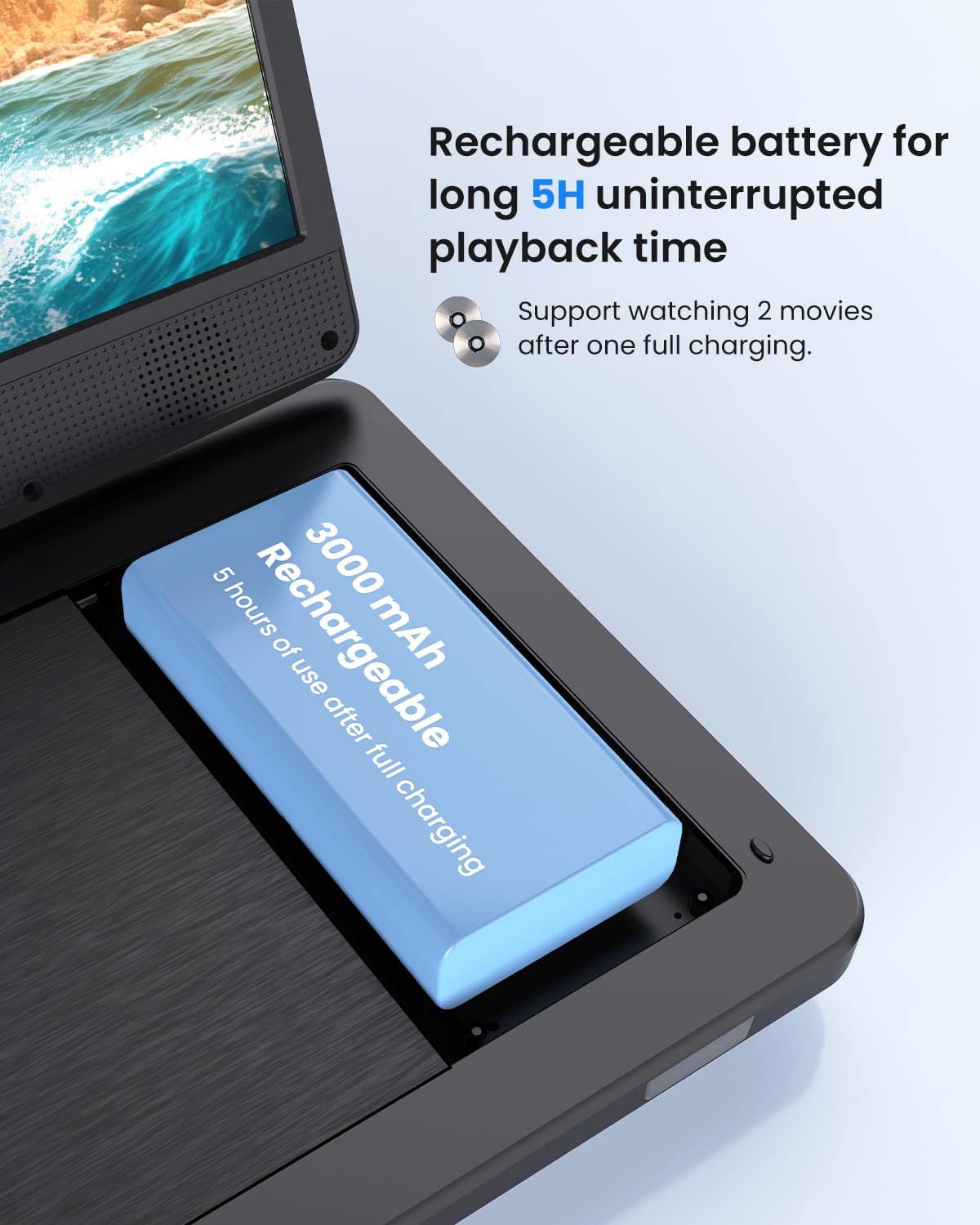 12.5 Portable Dvd Player With10.1 Hd Ips Screen For Kids,Car Dvd Player With Headrest Mount, 360 Rf Remote Control, 2 Earphone J