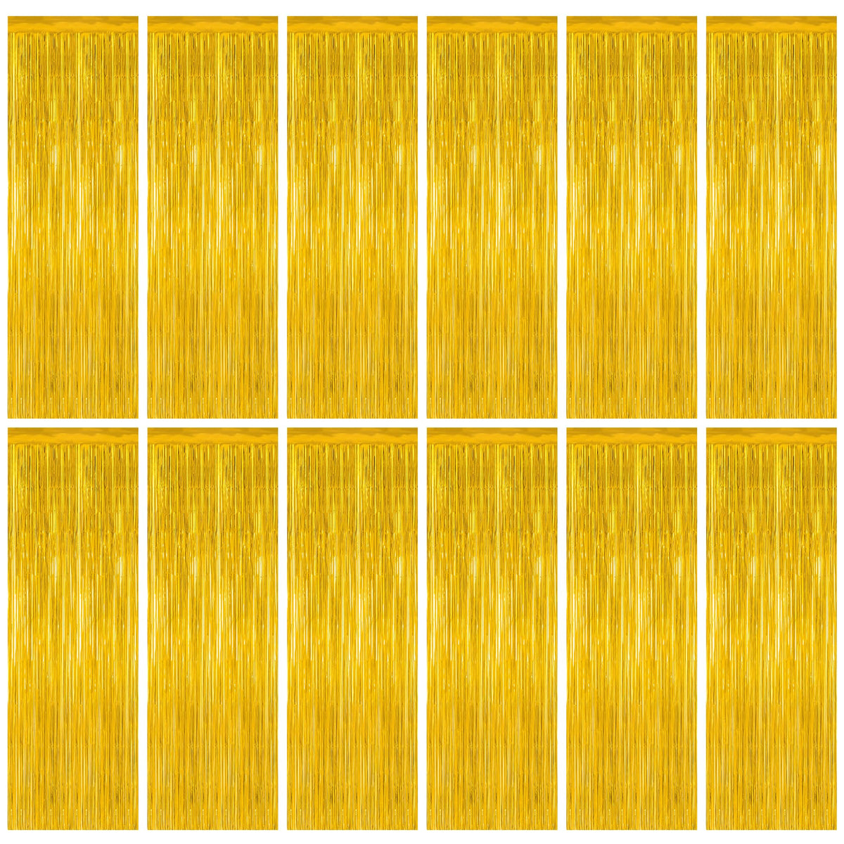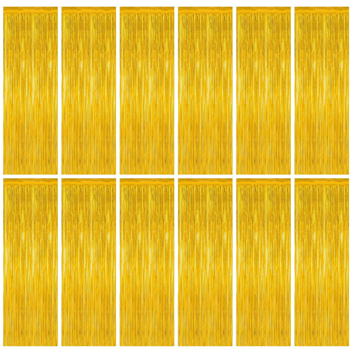 12 Pack 2025 Graduation Decorations, 3.28 Ft X 7.05 Ft Gold Backdrop Curtains, Metallic Class Of 2025 Backdrop Fringe Curtains F